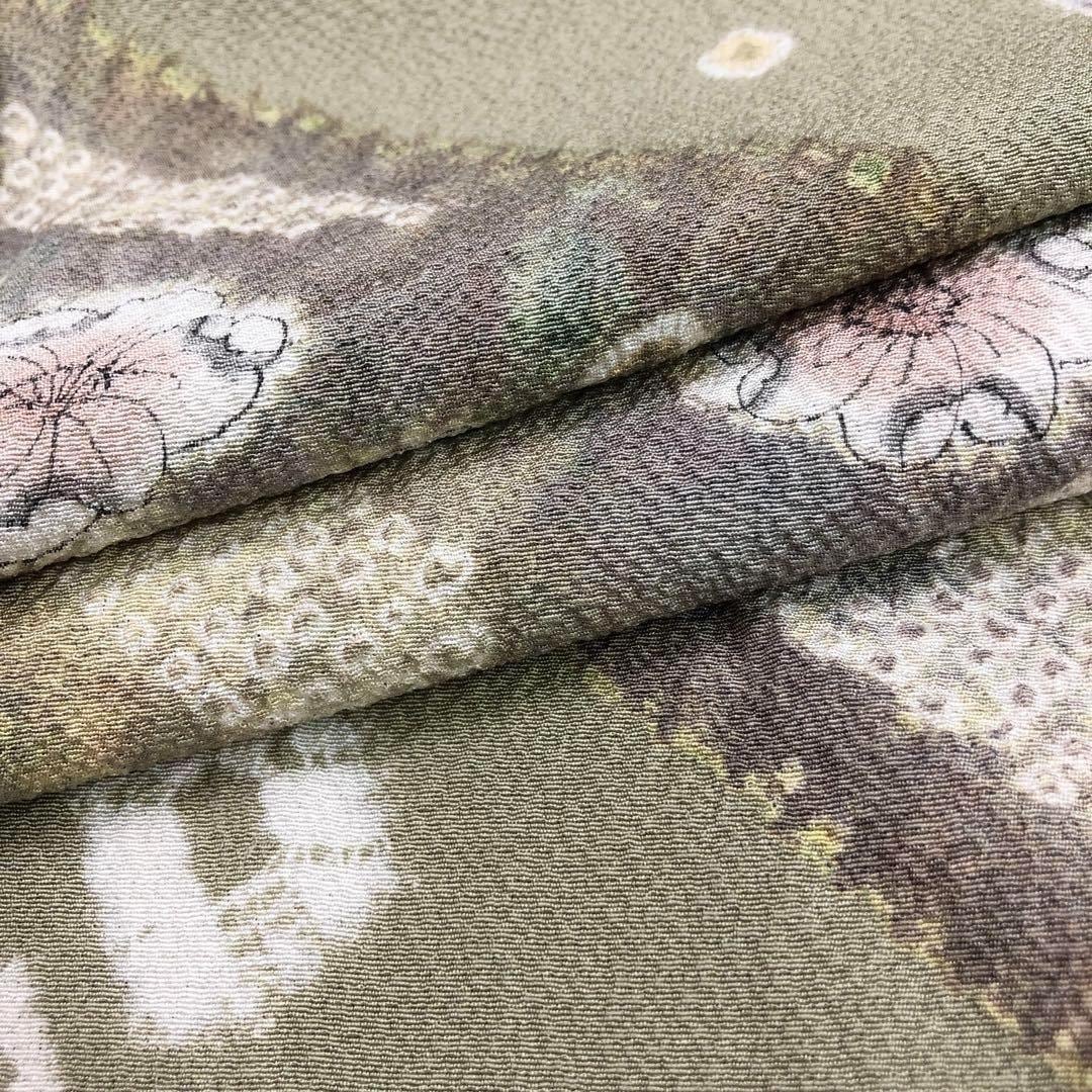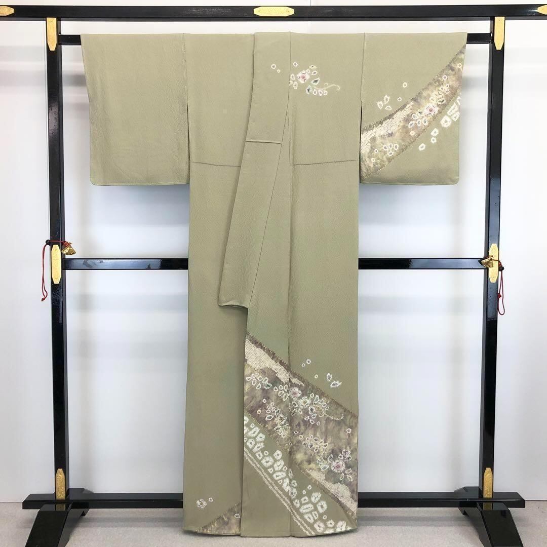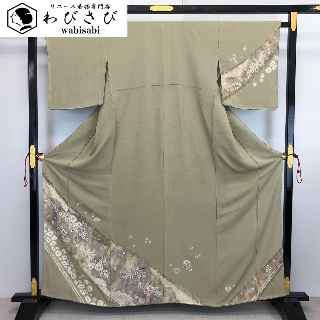 訪問着 辻が花絞り 絞り染模様 縮緬 裏柳色 ガード加工 しつけ糸 K-3575 着物 きもの kimono 和服 和装 中古 リサイクル着物 【送料無料】