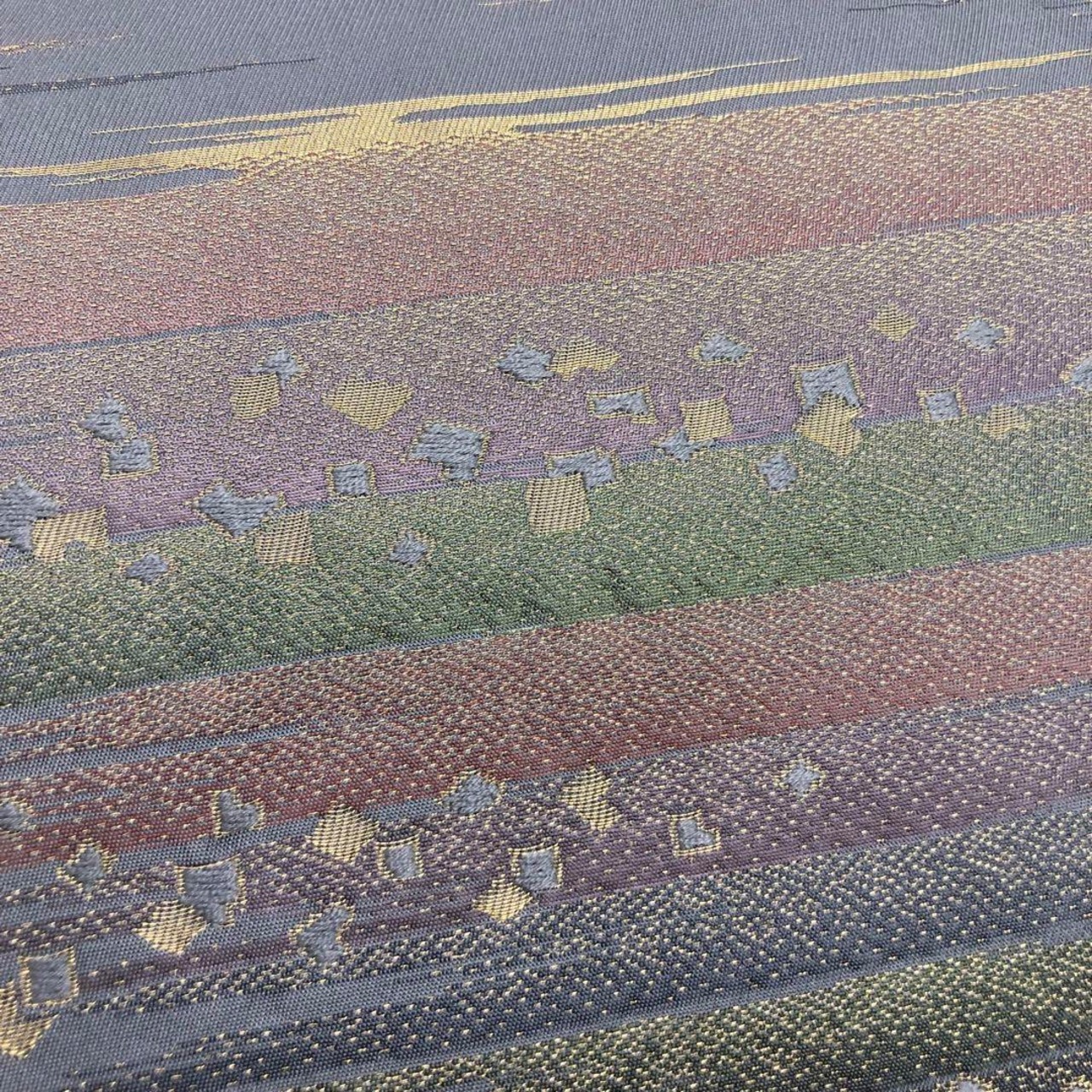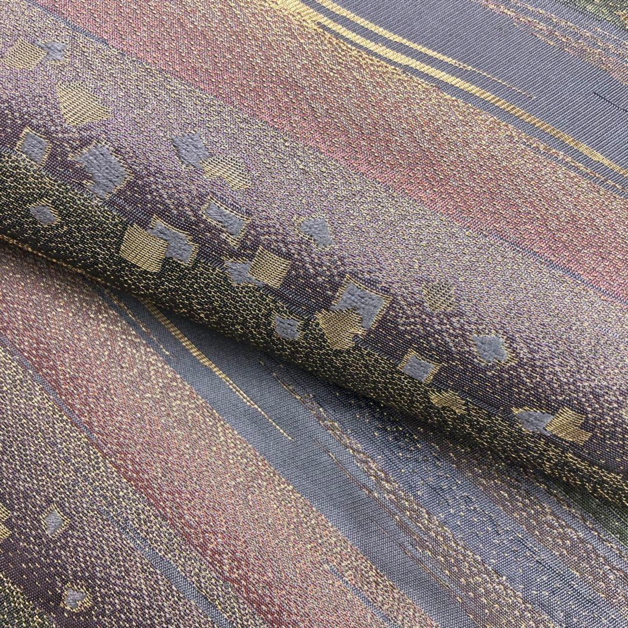 名古屋帯 淡い色彩の横段霞模様 金糸 鉛色 O-3496