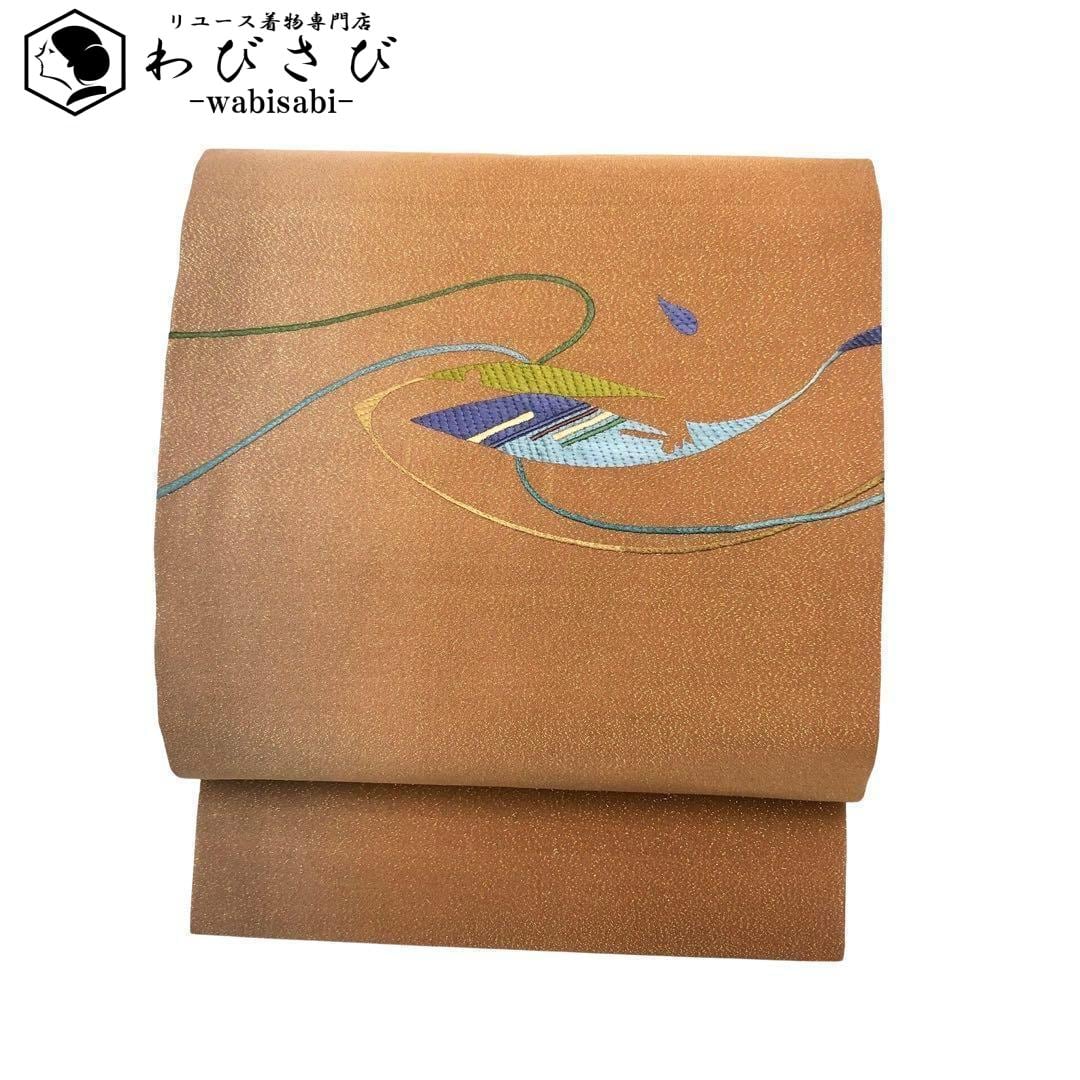 名古屋帯 抽象刺繍模様 金通し 暈し 黄櫨色 O-3527 着物 きもの kimono 和服 和装 中古 リサイクル着物 【送料無料】