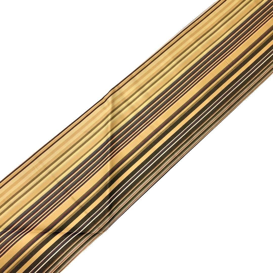 名古屋帯 総柄縦縞織模様 ストライプ 小麦色 O-3528 着物 きもの kimono 和服 和装 中古 リサイクル着物 【送料無料】