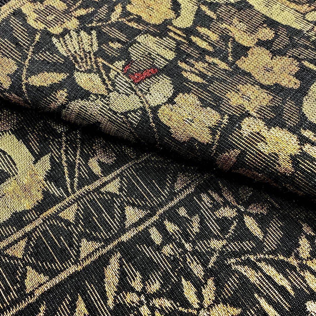 黒色ベースのお色に金糸が使われた花柄模様、弓を構える狩人の柄裄がデザインされた素敵な柄裄のお品でございます。