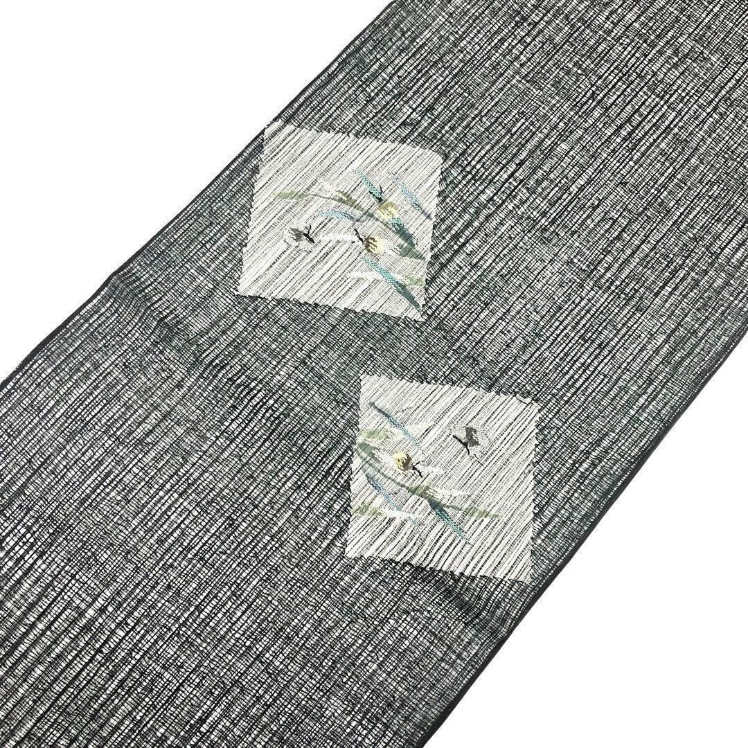 夏帯 袋帯 夏すくい 菱形に草花模様 黒色 O-3447