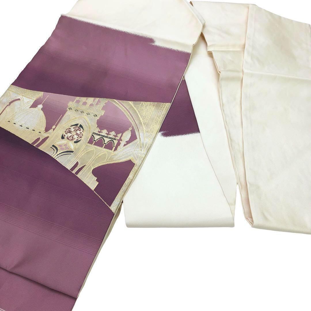 名古屋帯 西洋の宮殿柄 金糸 グラデーション 半色 O-3539