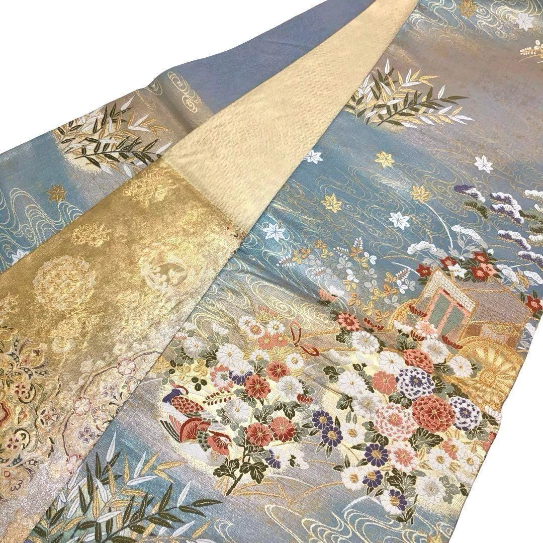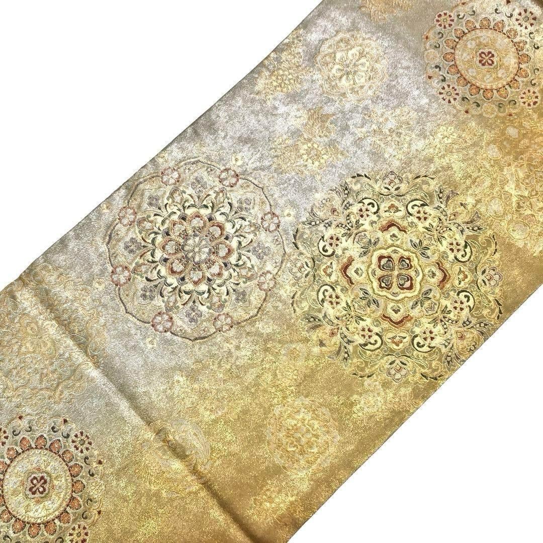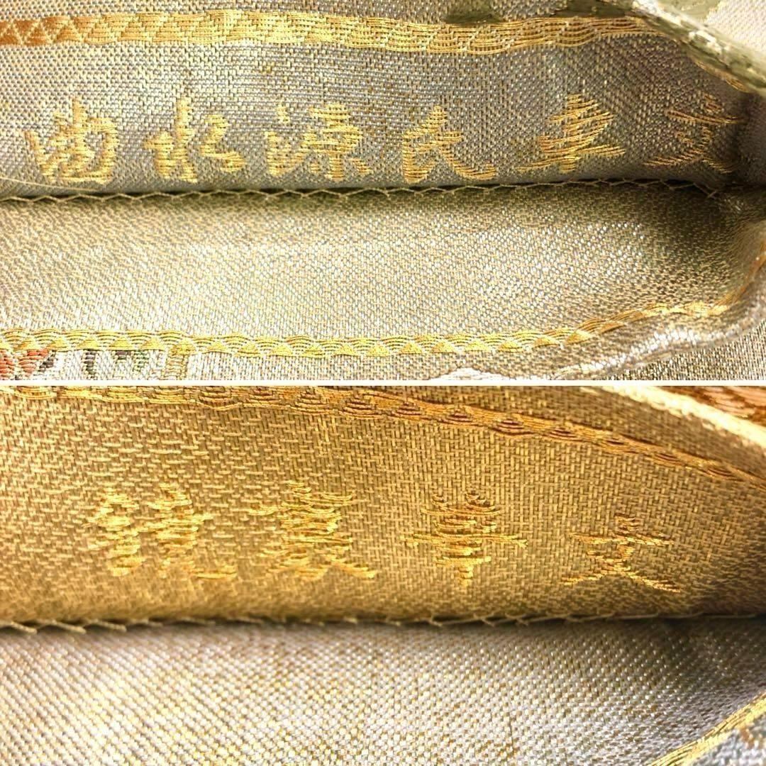 袋帯 リバーシブル 曲水源氏車文 鏡裏華文 美しい花模様 鴛鴦 O-3545 着物 きもの kimono 和服 和装 中古 リサイクル着物 【送料無料】