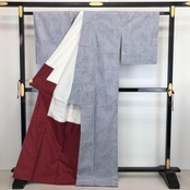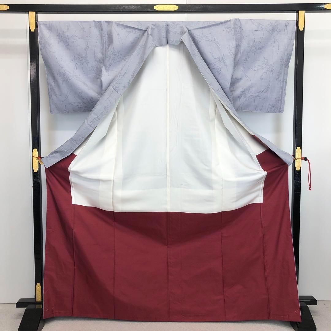 本場結城紬 南天柄 100亀甲 証紙付 薄露草色 トールサイズ K-3589 着物 きもの kimono 和服 和装 中古 リサイクル着物 【送料無料】
