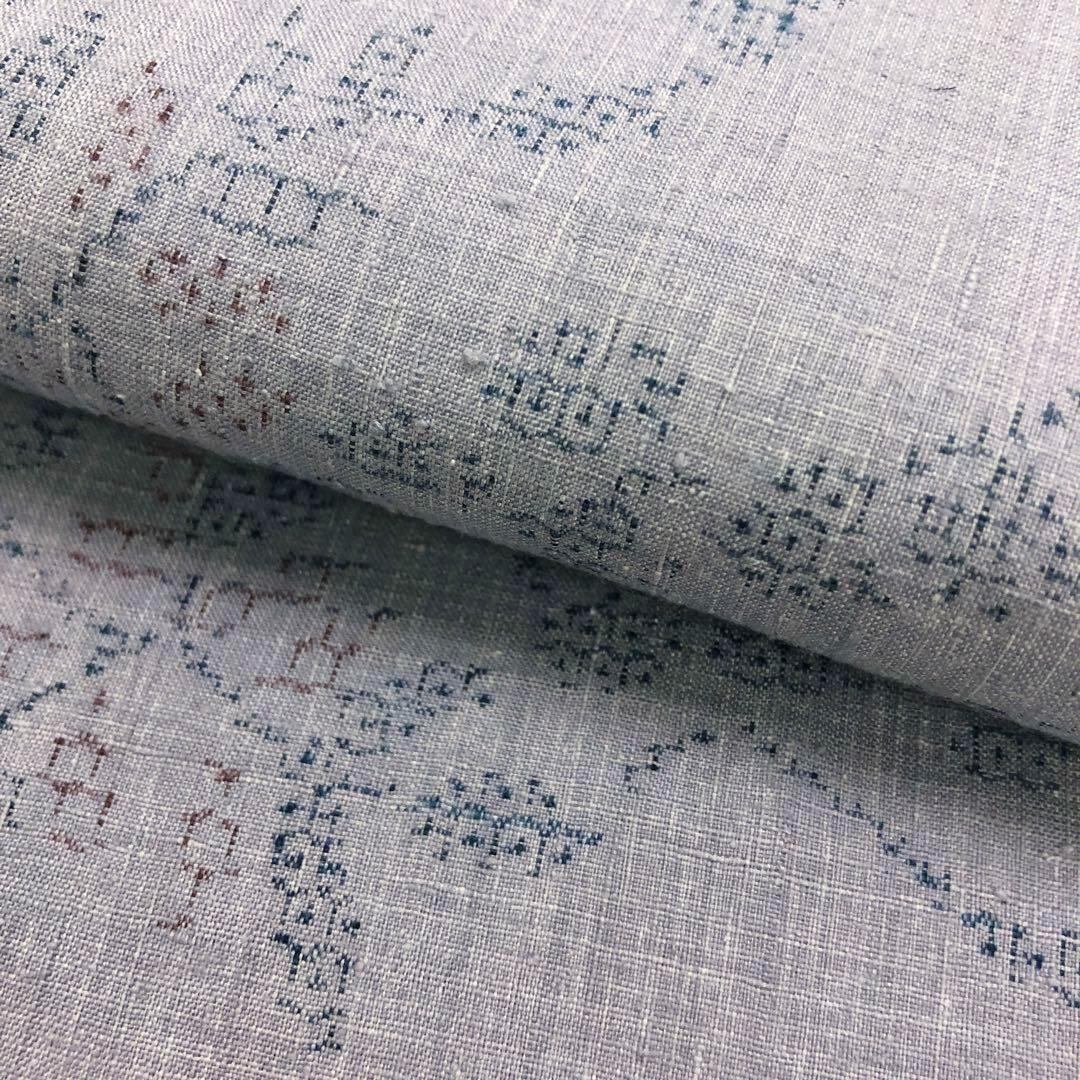 薄露草色の上品なお色味、100亀甲の南天の織柄がデザインされた雰囲気の良い素敵なお品でございます。