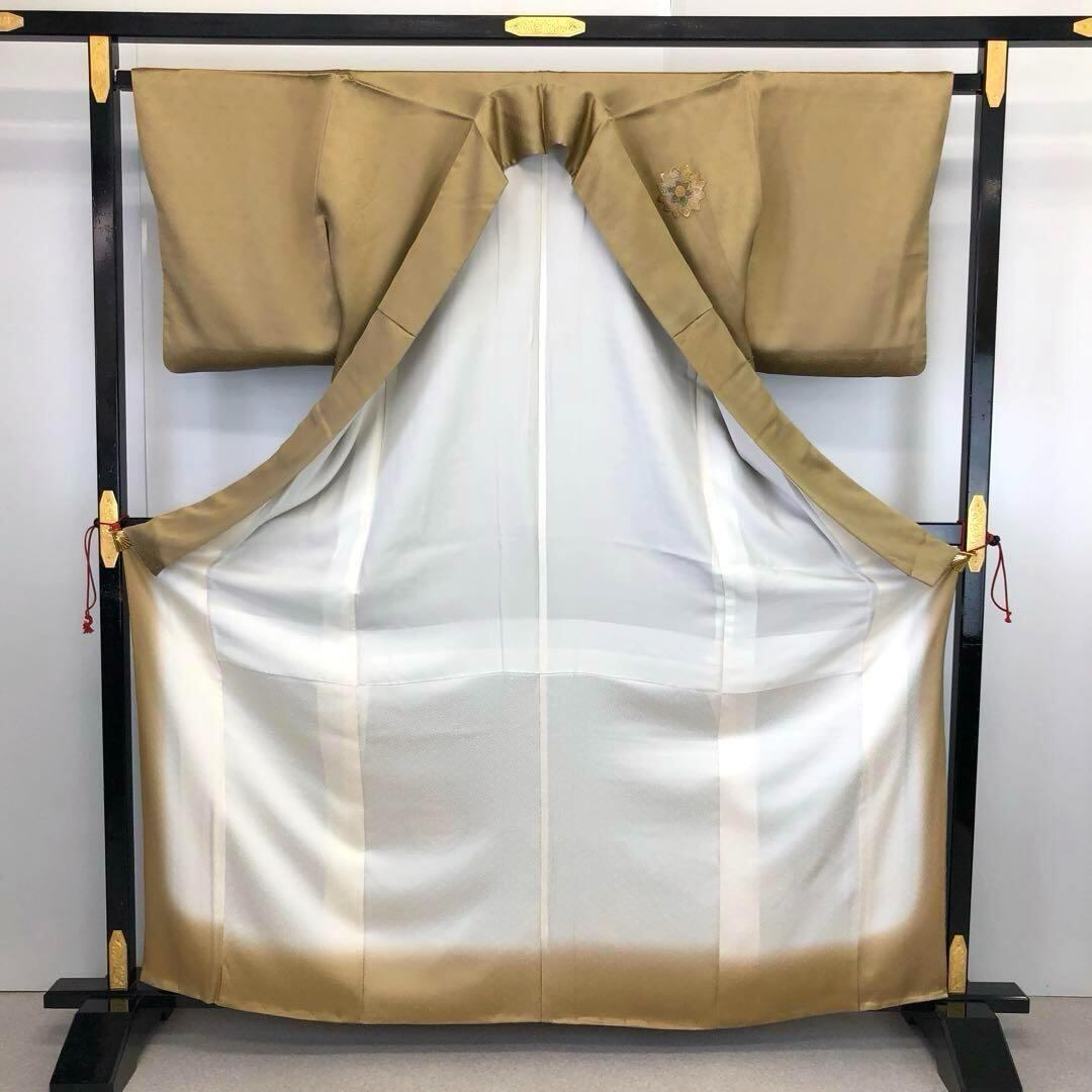 付下げ 美しい華柄模様金彩 暈し 丁子煤竹色 K-3610 着物 きもの kimono 和服 和装 中古 リサイクル着物 【送料無料】