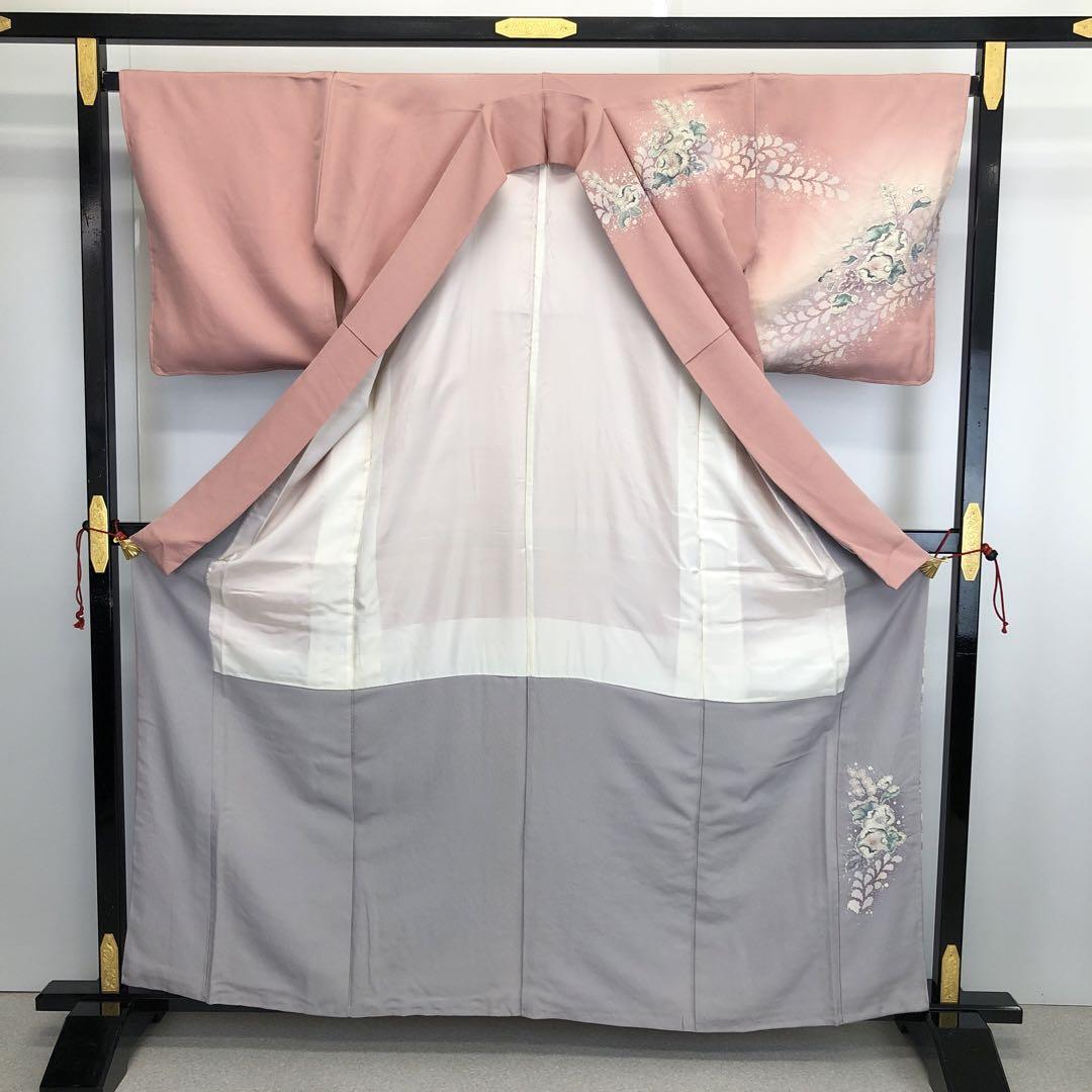 訪問着 桐屋翠山工房 美しい辻が花絞り 縮緬 長春色 しつけ糸 K-3611