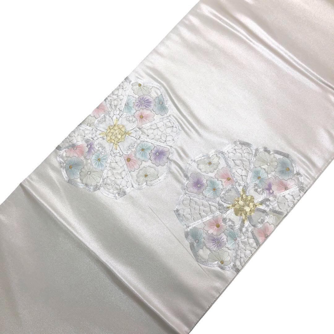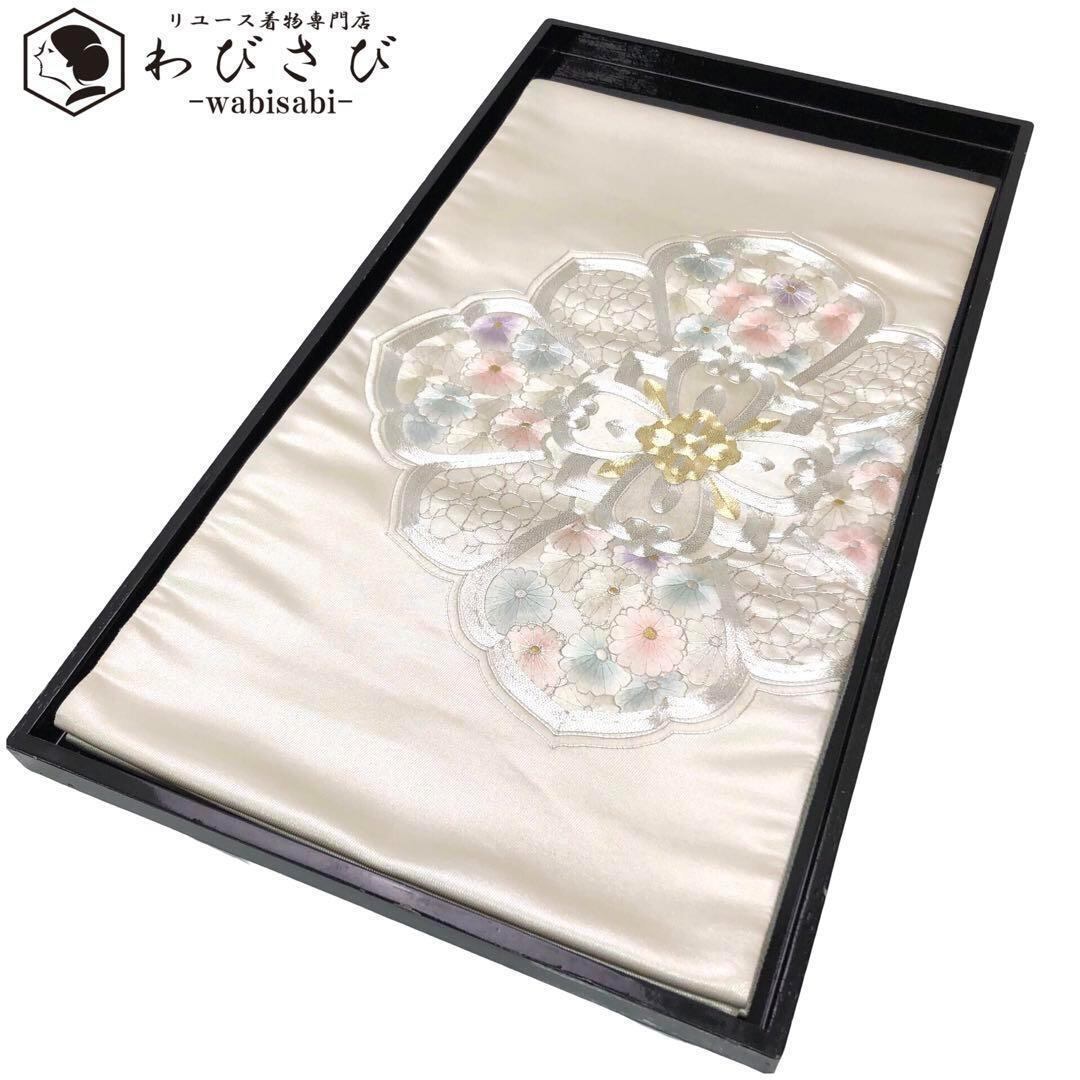 袋帯 中国刺繍 金銀駒刺繍 菊の花 乳白色 O-3543 着物 きもの kimono 和服 和装 中古 リサイクル着物 【送料無料】