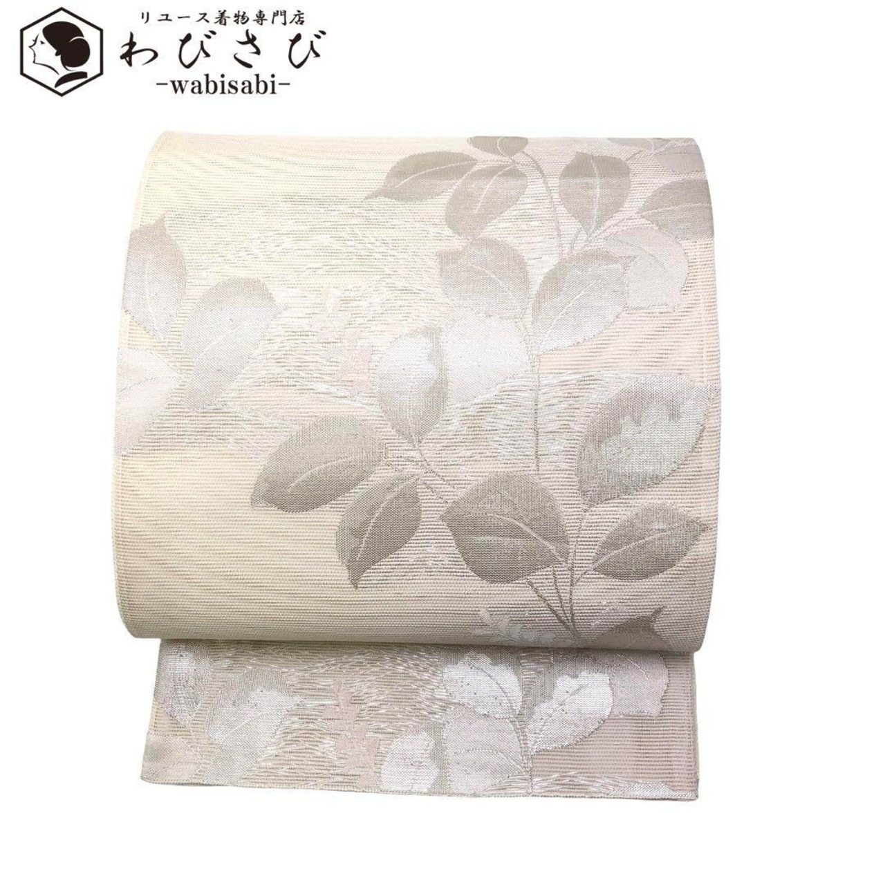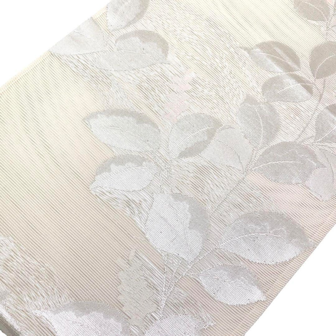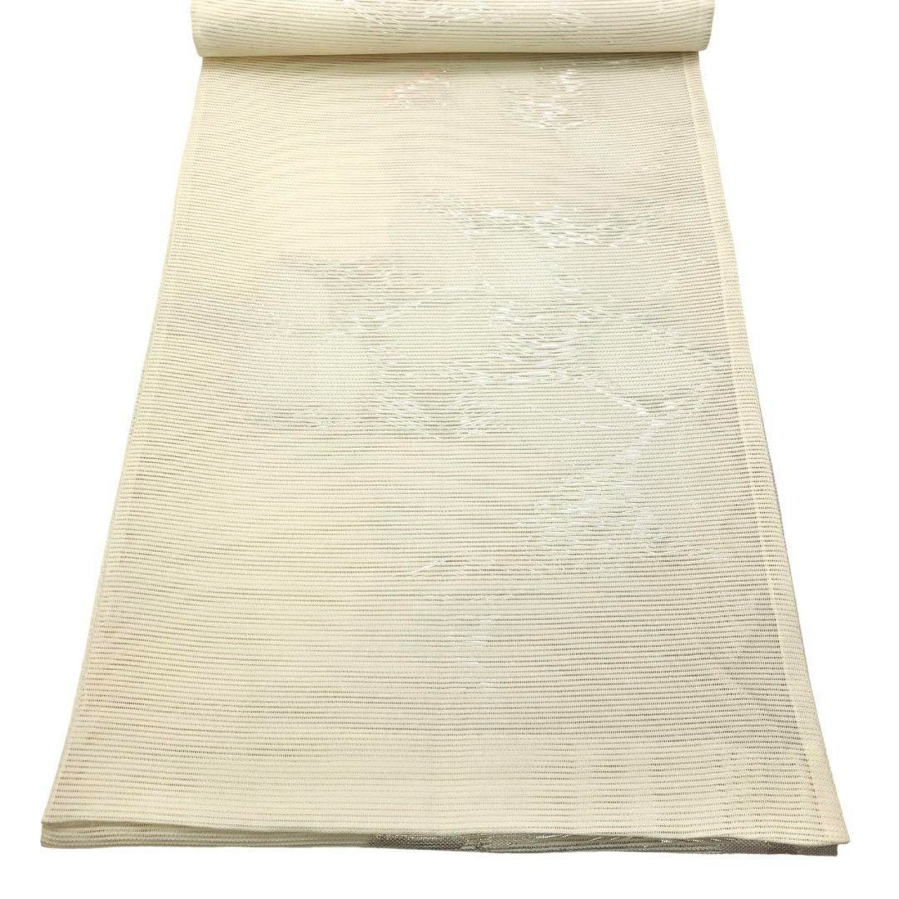 夏帯 袋帯 絽 上品な花草模様 銀糸 薄卵色 O-3570