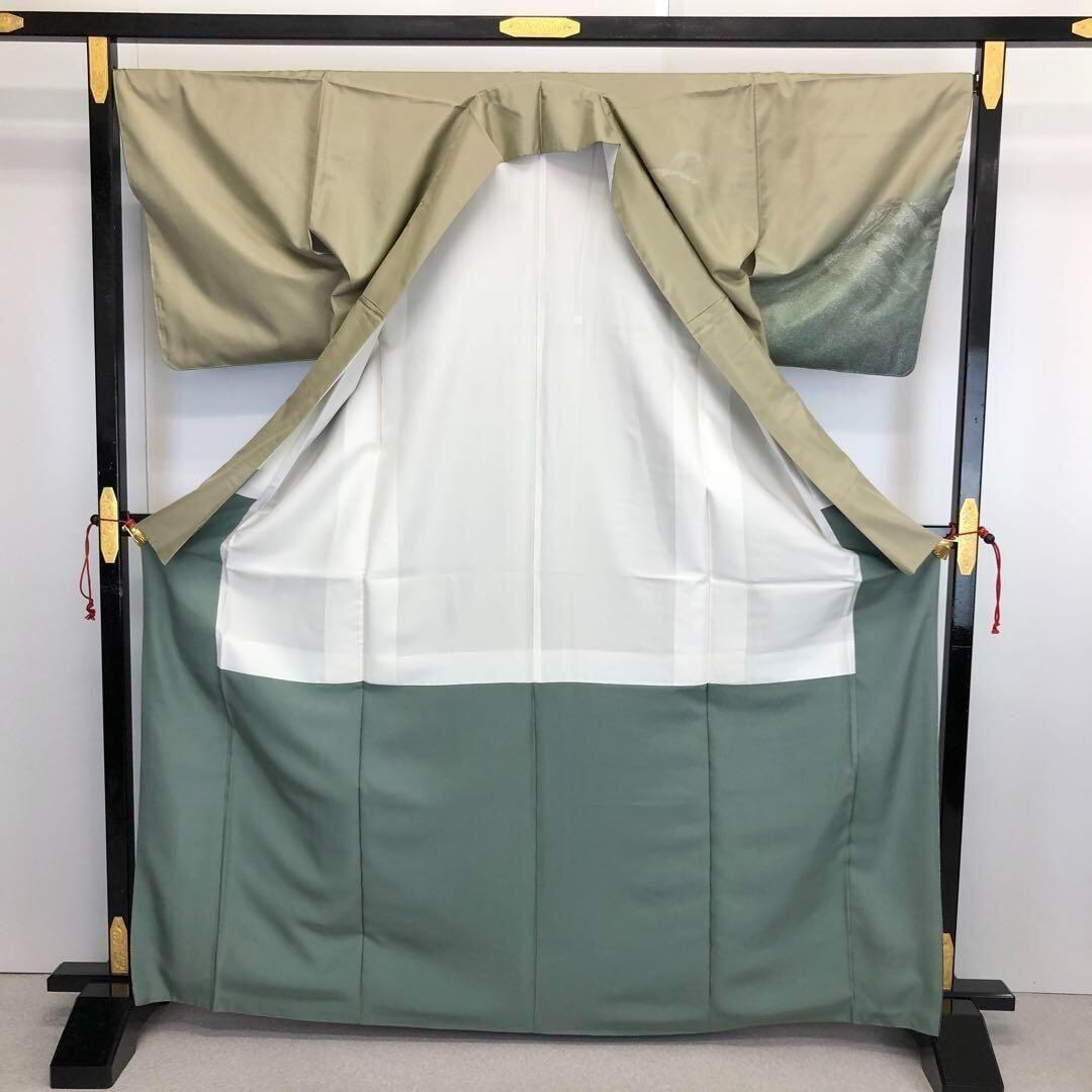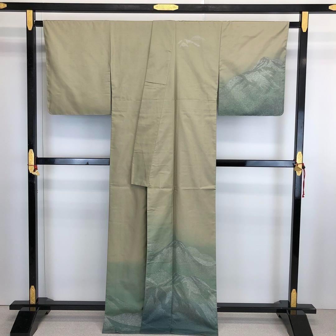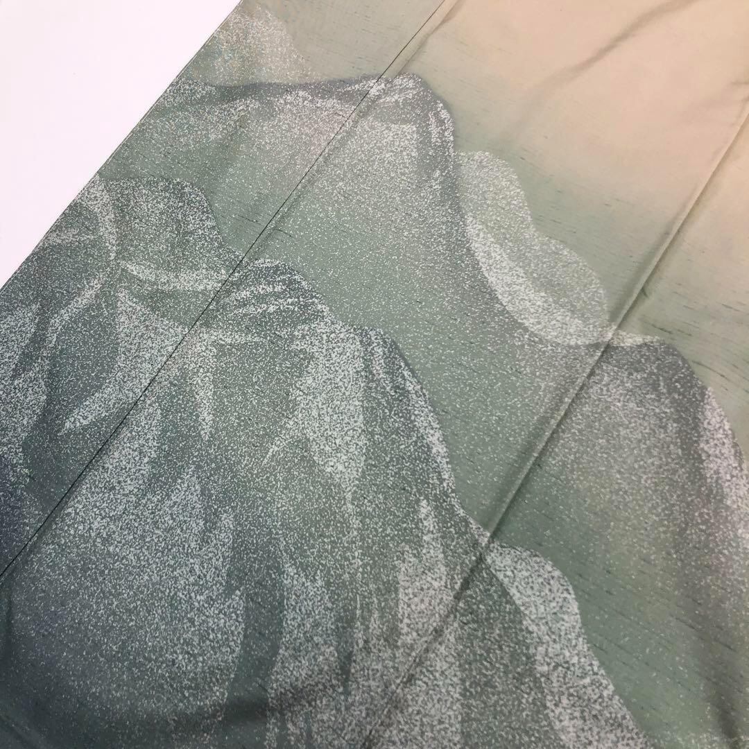 世界遺産、屋久杉染、紀州茶色ベースの美しい色彩の遠山模様がデザインされた素敵な柄裄のお品でございます。