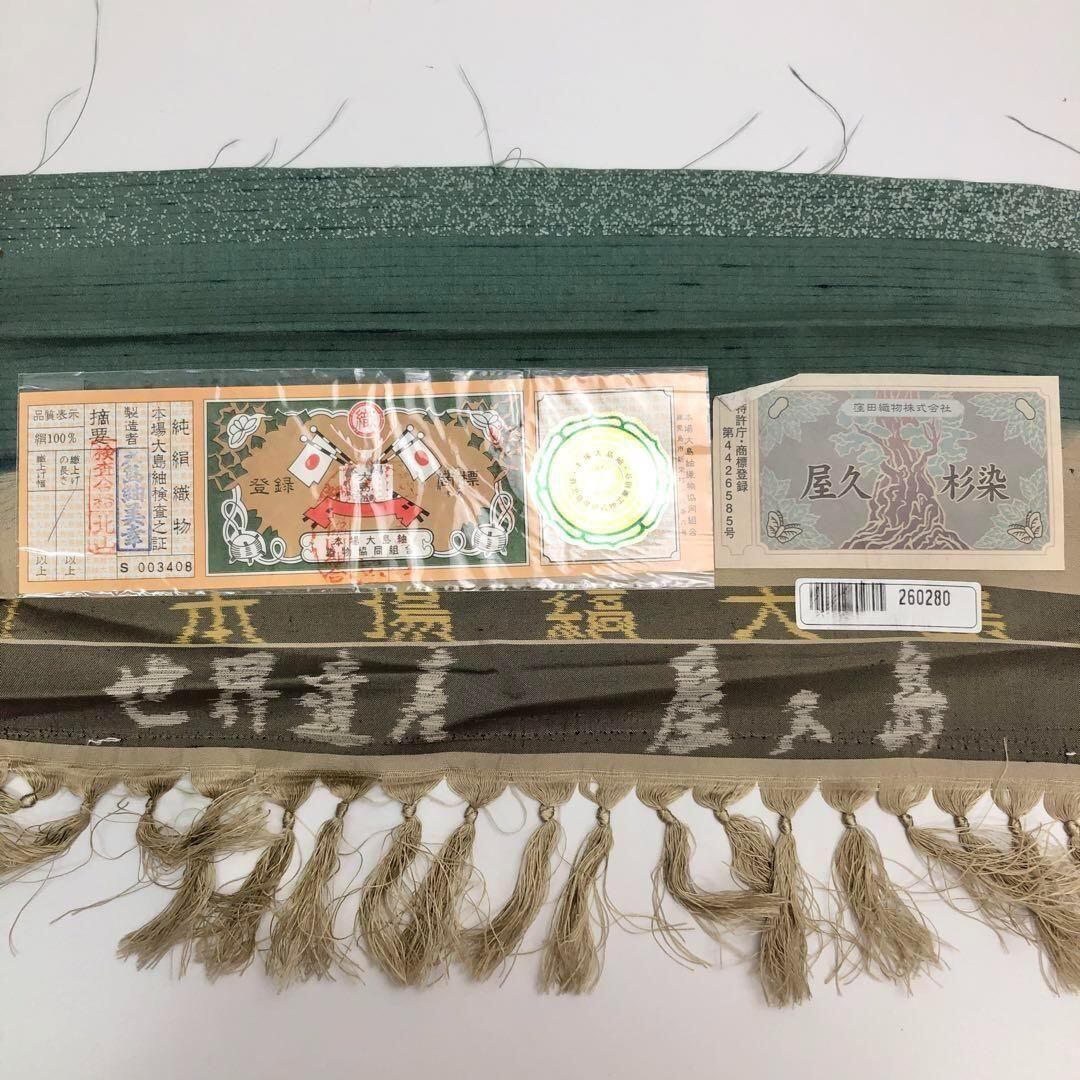 付下げ 染大島紬 世界遺産屋久杉染 証紙付 紀州茶色 しつけ糸 K-3627 着物 きもの kimono 和服 和装 中古 リサイクル着物 【送料無料】