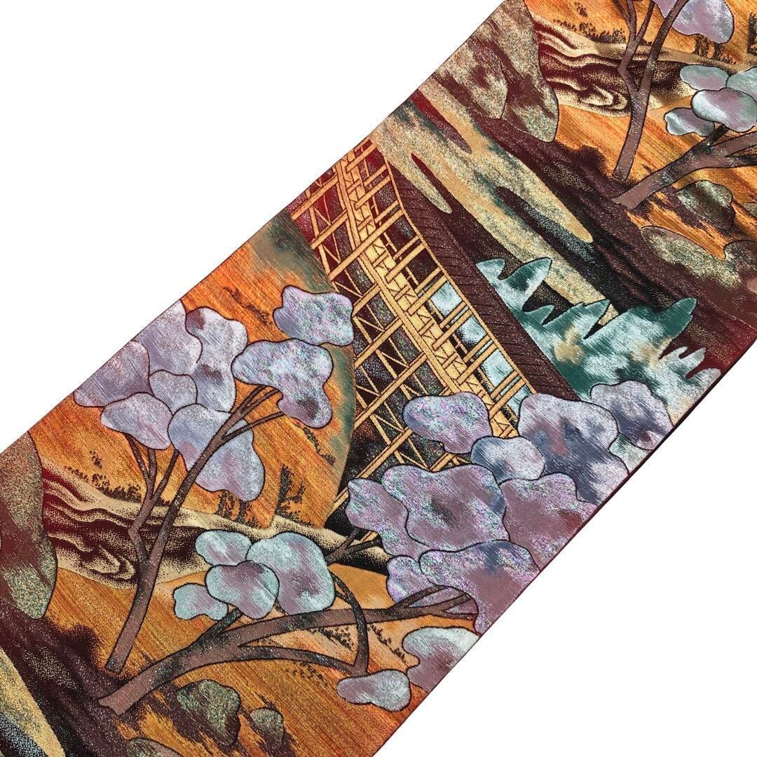袋帯 風景柄 橋桁に松模様 オーロラ箔 金糸 O-3579