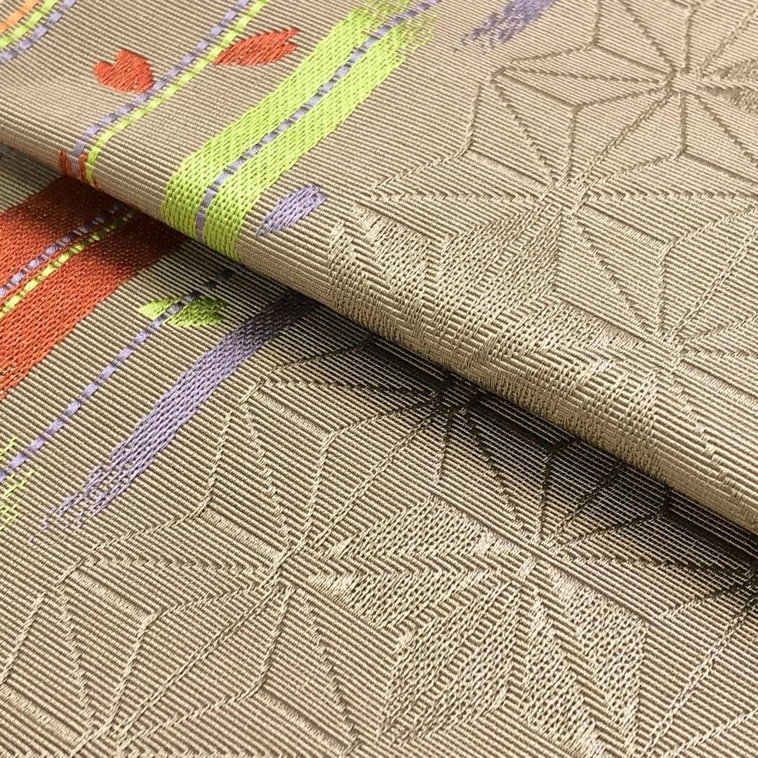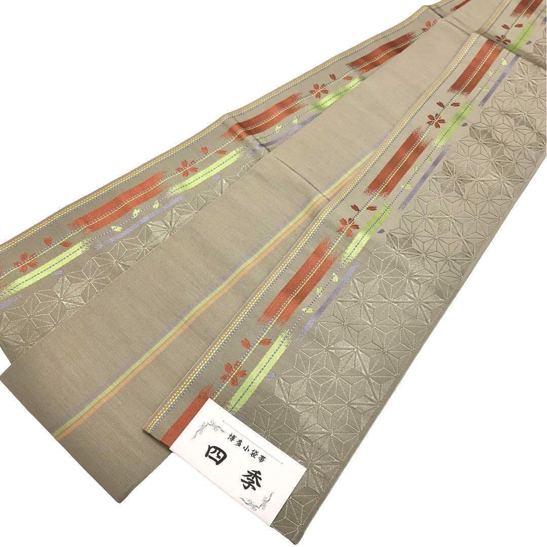 半幅帯 本場筑前博多織 リバーシブル 縦柄 桜に麻の葉模様 古晒色 O-3589