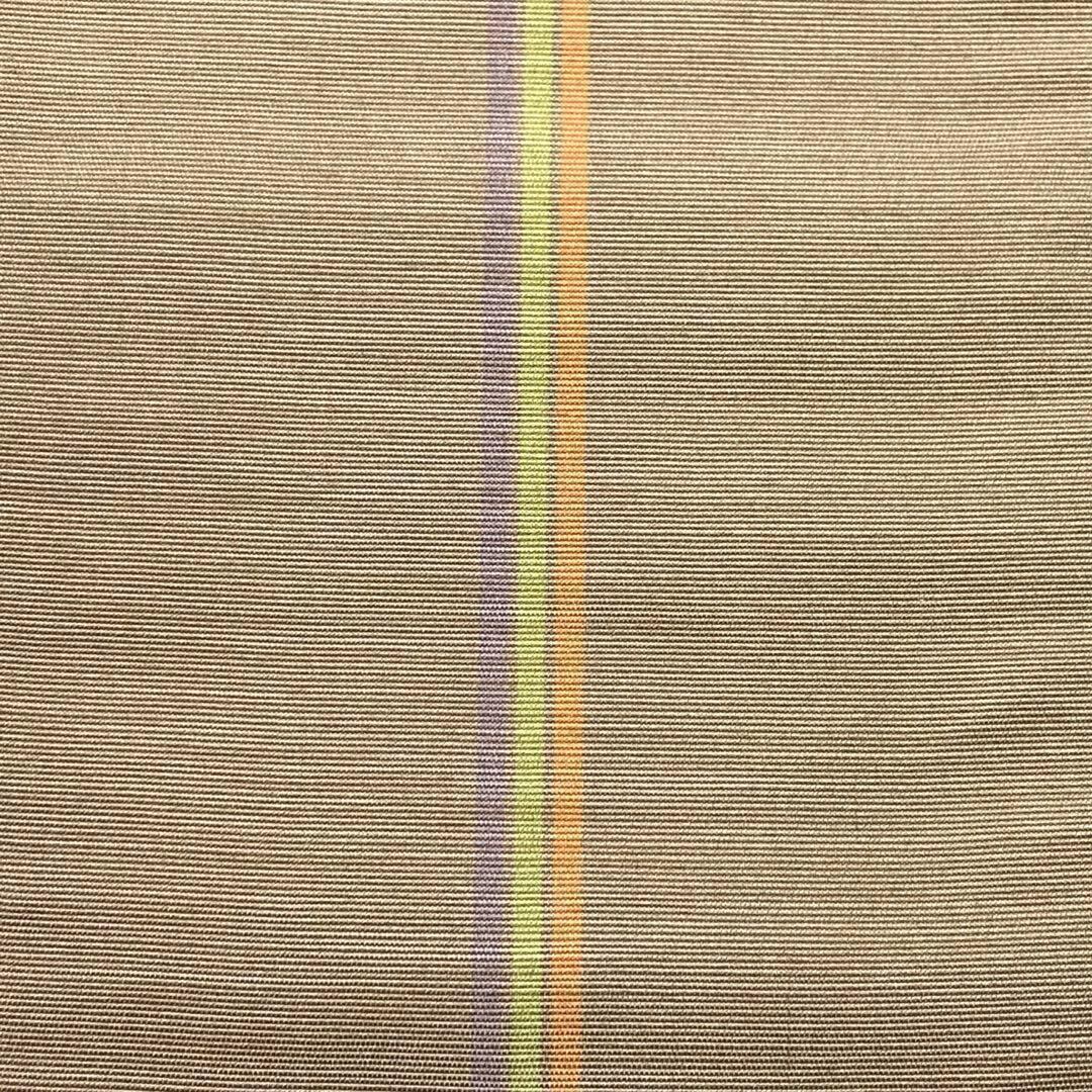 古晒色の落ち着きのあるお色味、縦柄ストライプ、桜の花に麻の葉模様がデザインされた両面楽しめる素敵なお品でございます。