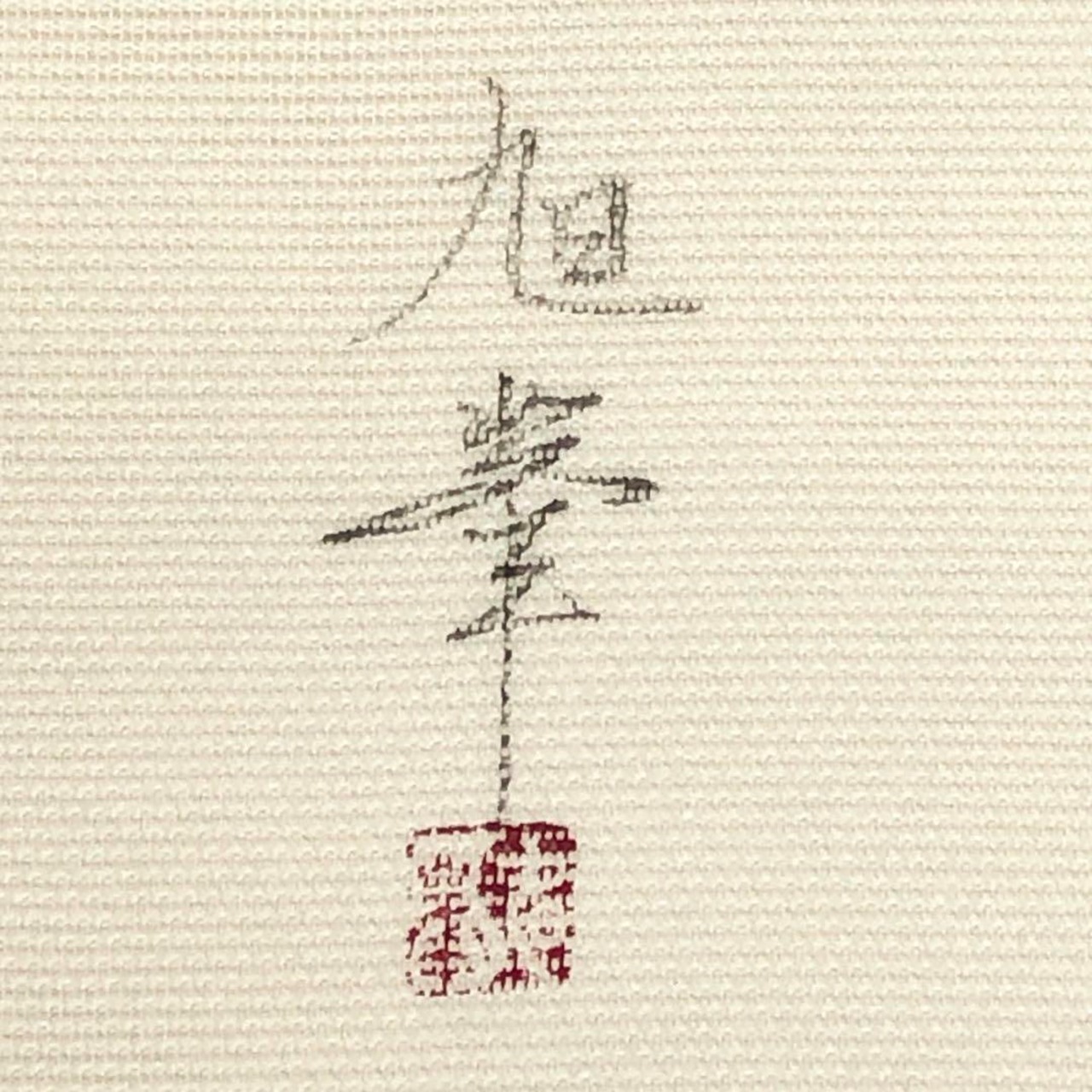 乳白色の品のあるお色味に手描きに刺繍でデザインされた竹柄に白花模様の上品で涼しげな印象の素敵な柄裄のお品でございます。