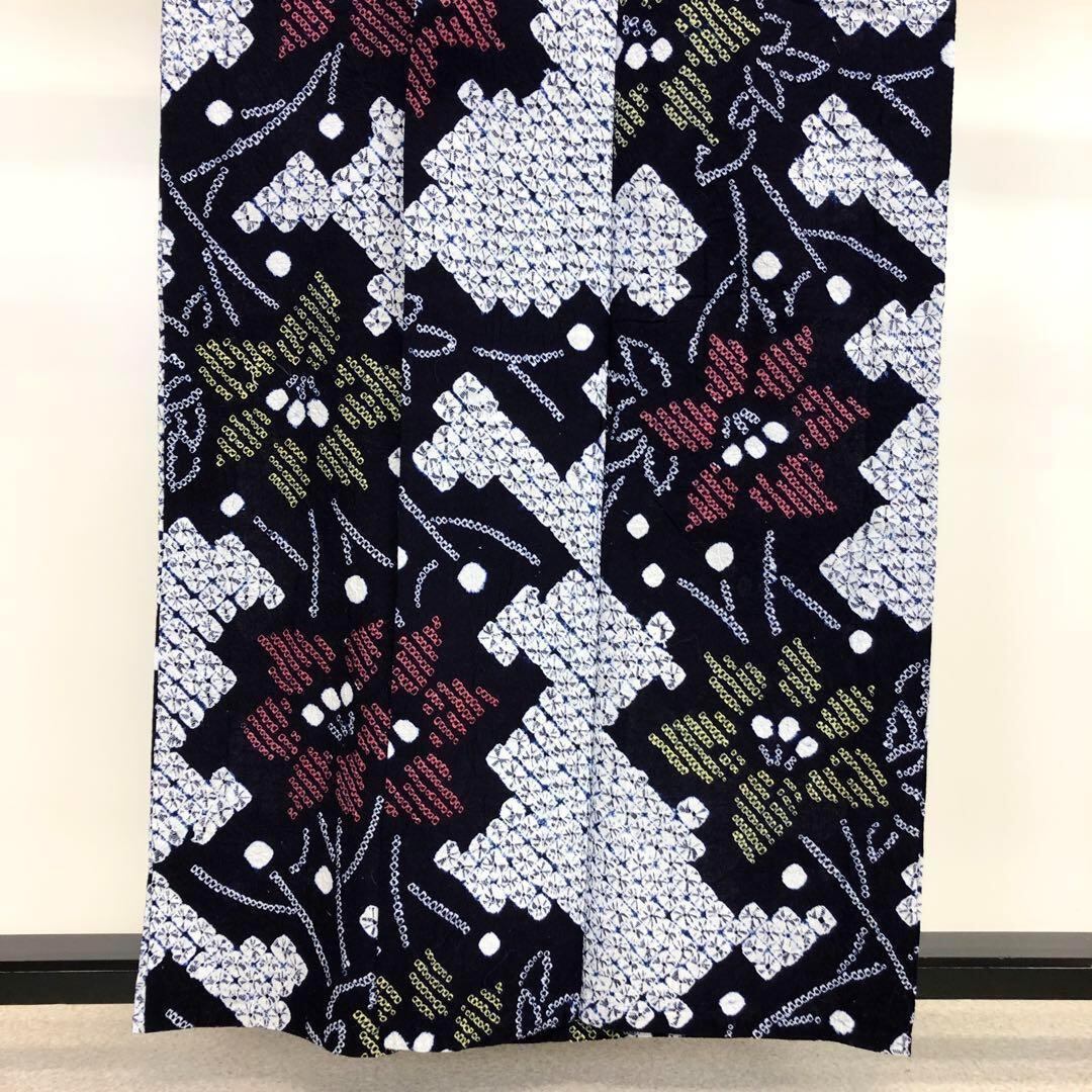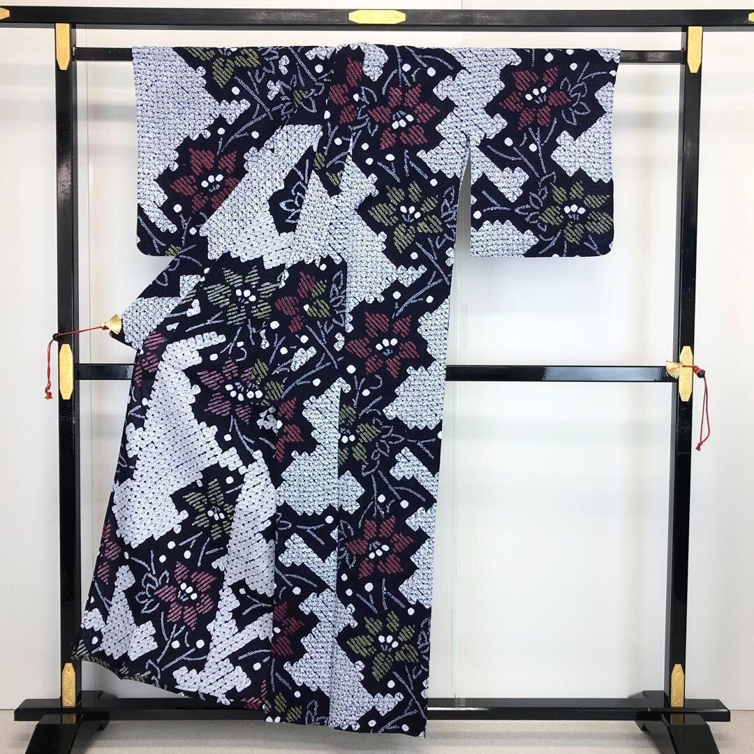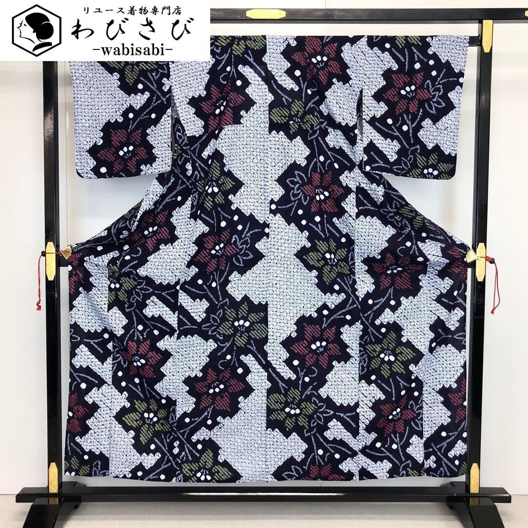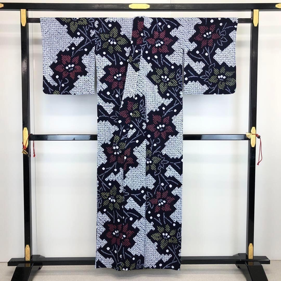 夏着物 浴衣 有松鳴海本絞り 桔梗の花模様 藍色 K-3657 着物 きもの kimono 和服 和装 中古 リサイクル着物 【送料無料】