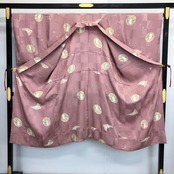 積紅色ベースのお色味に格子模様、月にうさぎの柄裄がデザインされた素敵な柄裄のお品でございます。