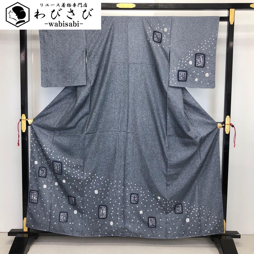 付下げ 藍染 絞り柄 叩き染 藍錆色 ガード加工 しつけ糸 K-3636 着物 きもの kimono 和服 和装 中古 リサイクル着物 【送料無料】