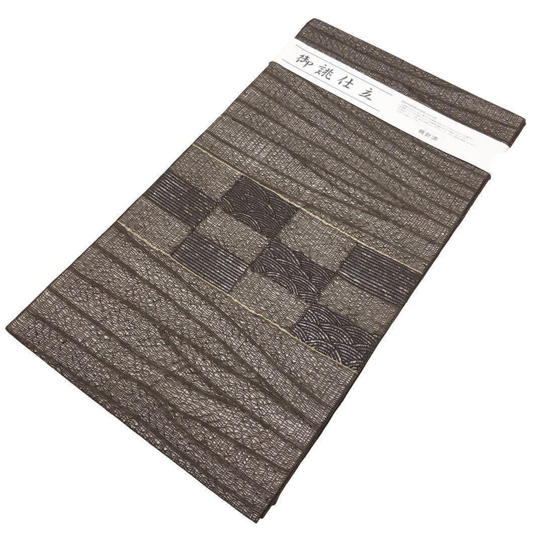 栗色ベースの透け感のあるすくい織、格子柄に横柄のよれ縞模様がデザインされた雰囲気の良い涼しげな柄裄のお品でございます。