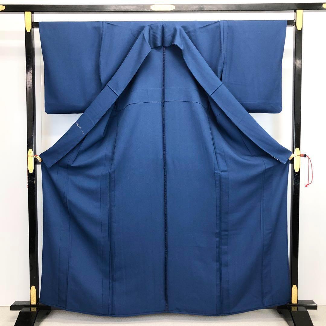 単衣 色無地 作家物 縮緬 藍褐色 ガード加工 K-3646