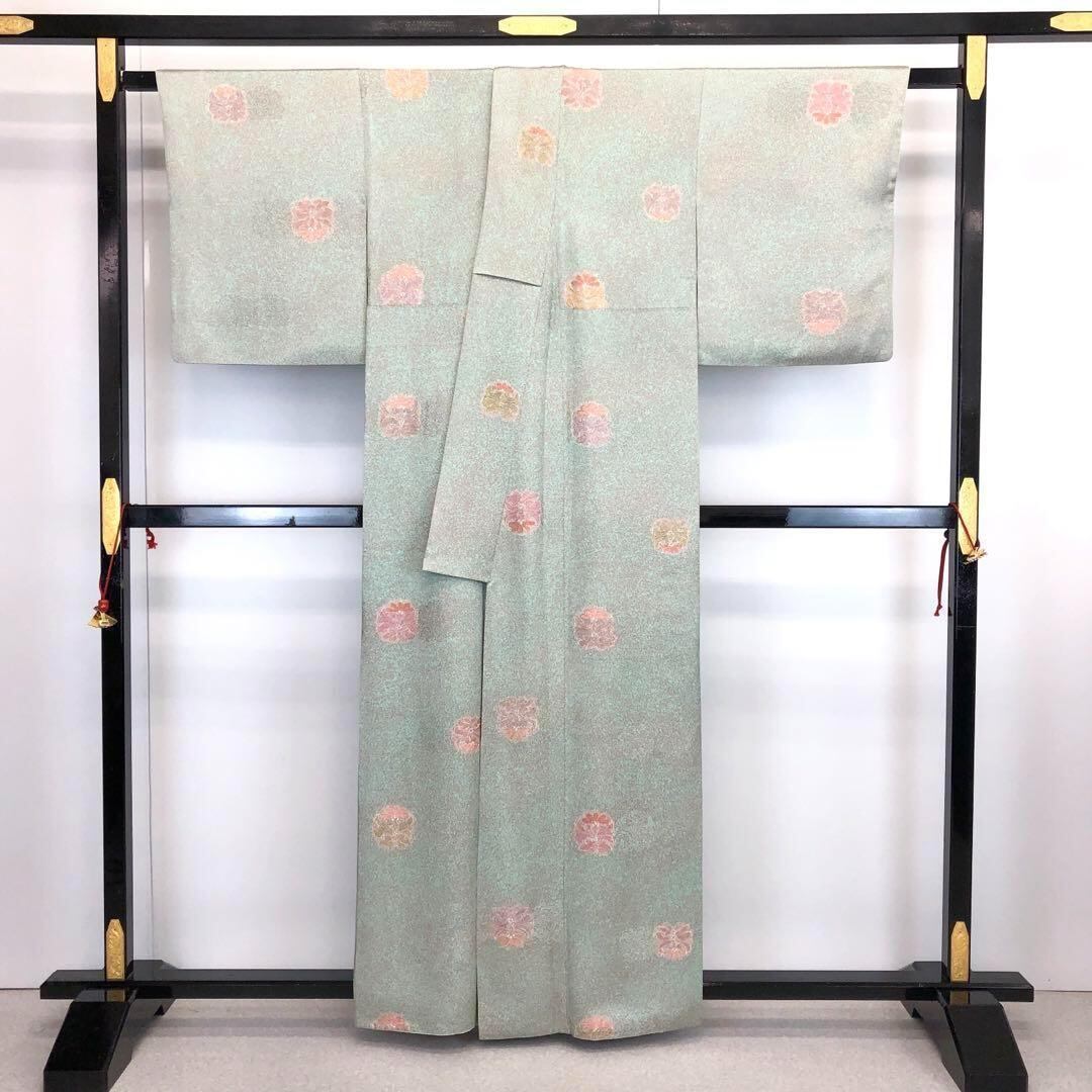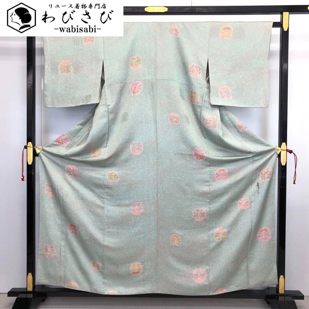 小紋 京友禅作家 松井青々 叩き染 飛び柄花模様 金糸 裏葉色 K-3637 着物 きもの kimono 和服 和装 中古 リサイクル着物 【送料無料】