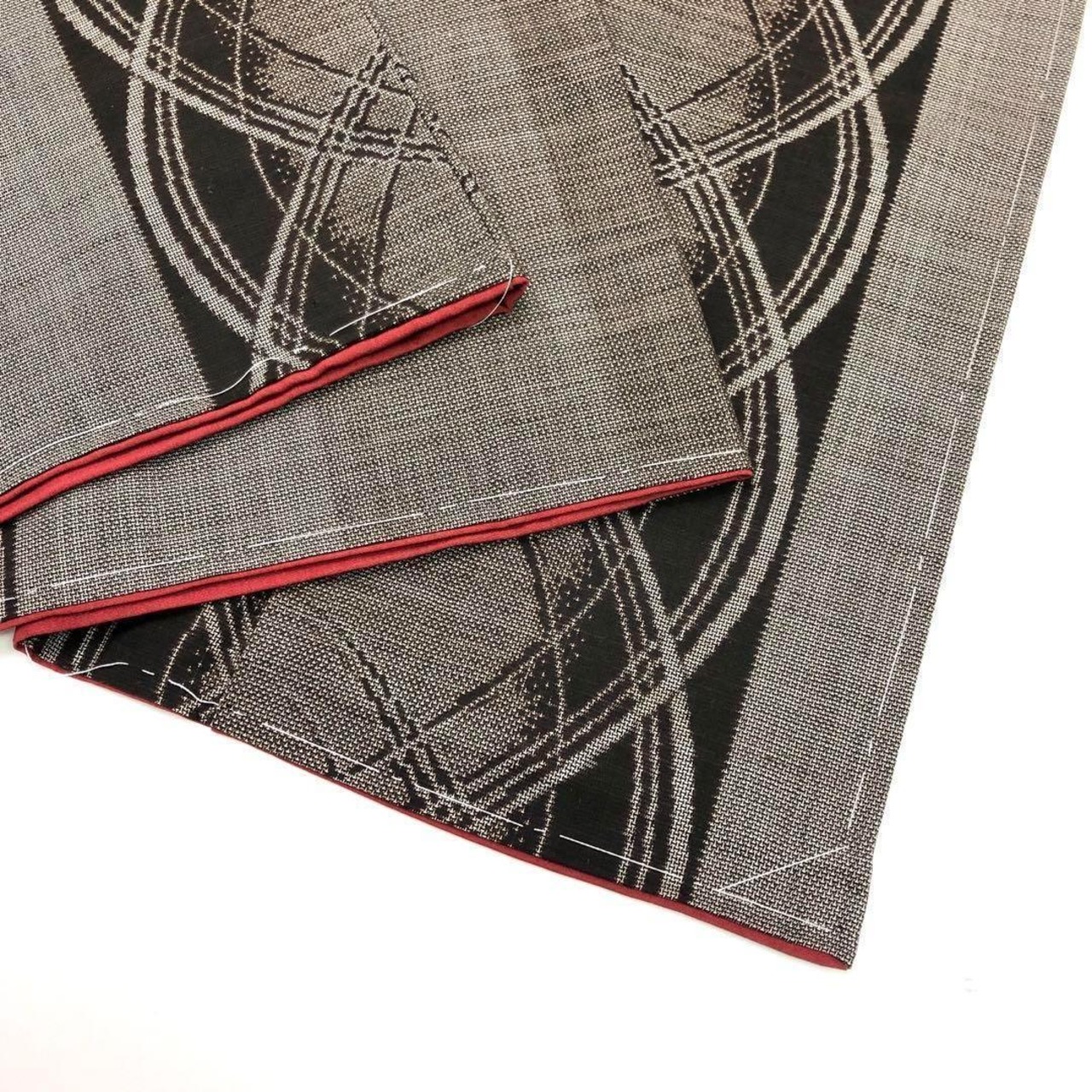 茶泥染の雰囲気の良いお色味に縦柄にデザインされた織模様が素敵なお品でございます。