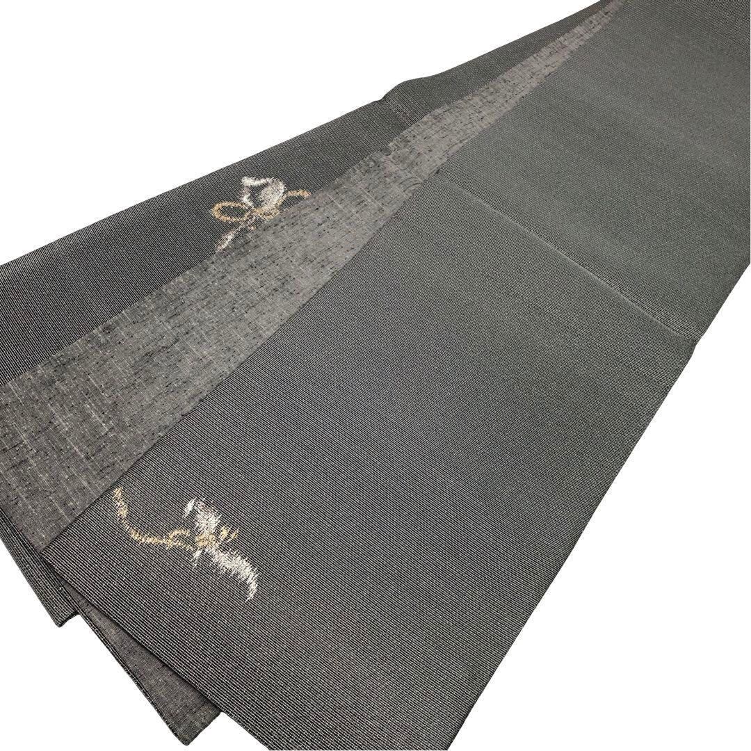 燻銀色のモノトーンのお色味に金銀糸が使われたモダンな瓢箪柄がデザインされた素敵な柄裄のお品でございます。