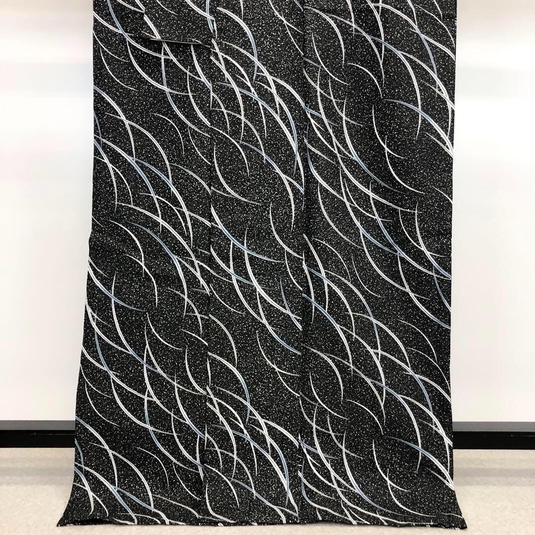 単衣 小紋 芝模様 叩き染 モノトーン トールサイズ しつけ糸 K-3670 着物 きもの kimono 和服 和装 中古 リサイクル着物 【送料無料】