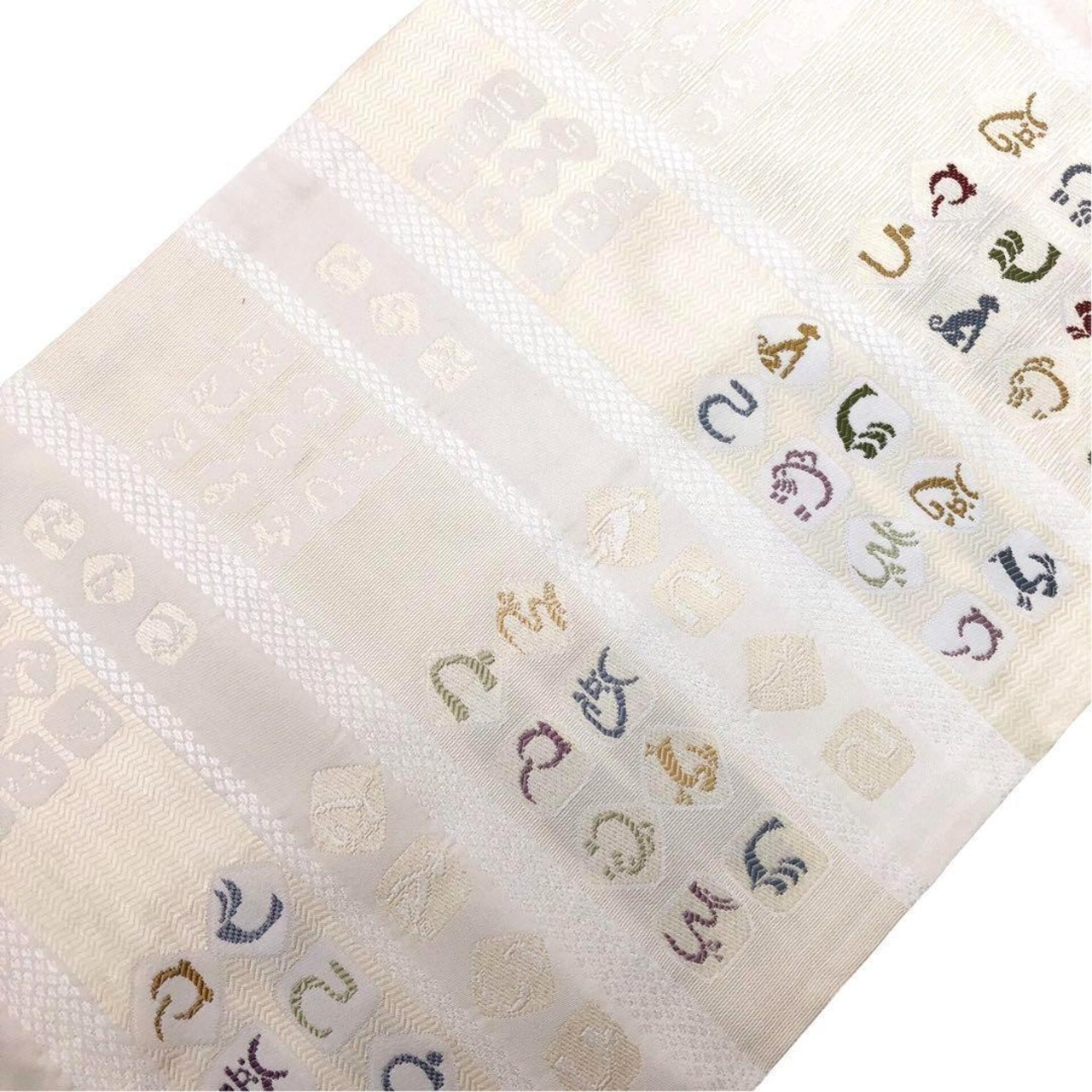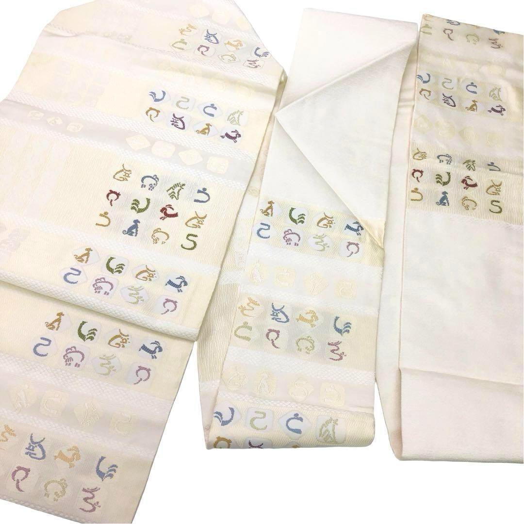 乳白色の品のあるお色味に色彩豊かな抽象干支柄織模様がデザインされた可愛らしい柄裄の素敵なお品でございます。