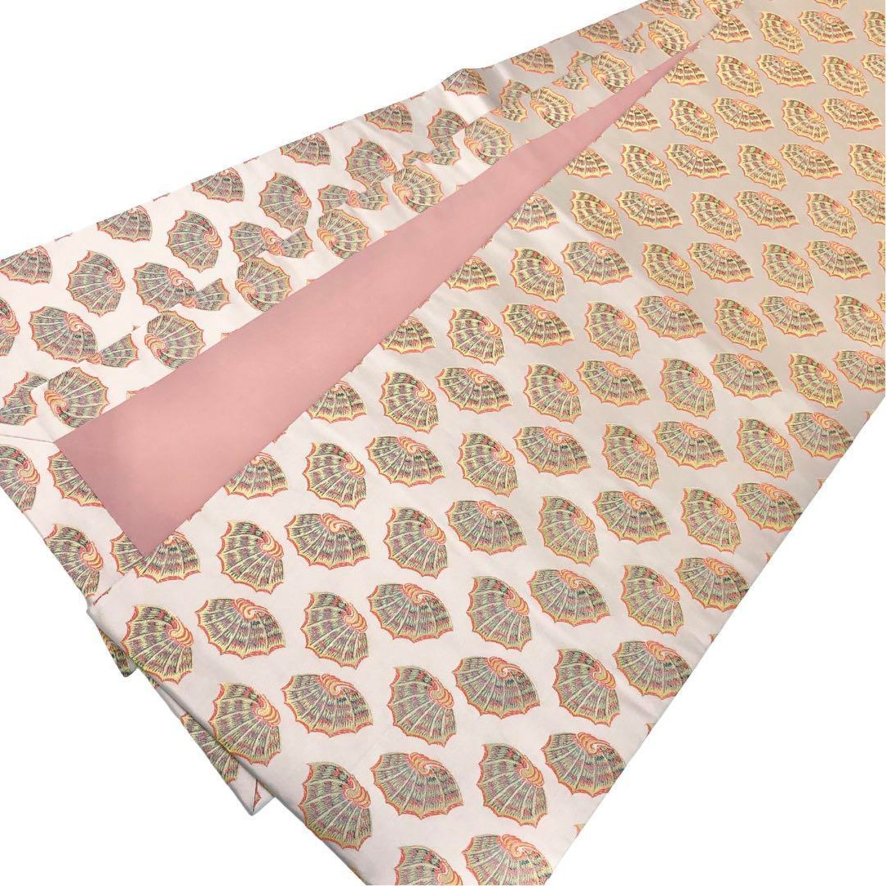 今様色の上品なお色味に彩りの美しい彩貝紋様がデザインされた素敵なお品でございます。