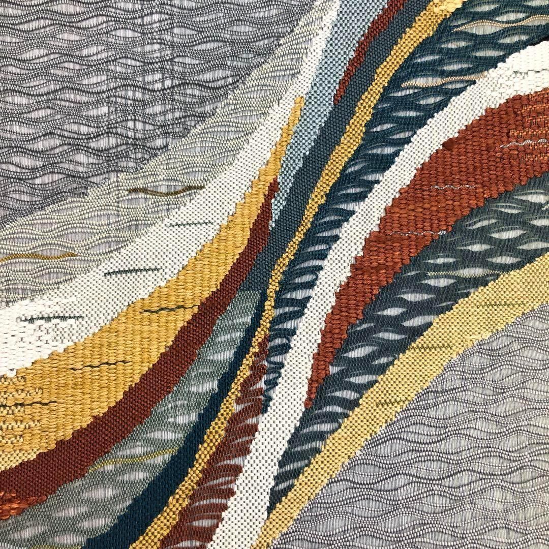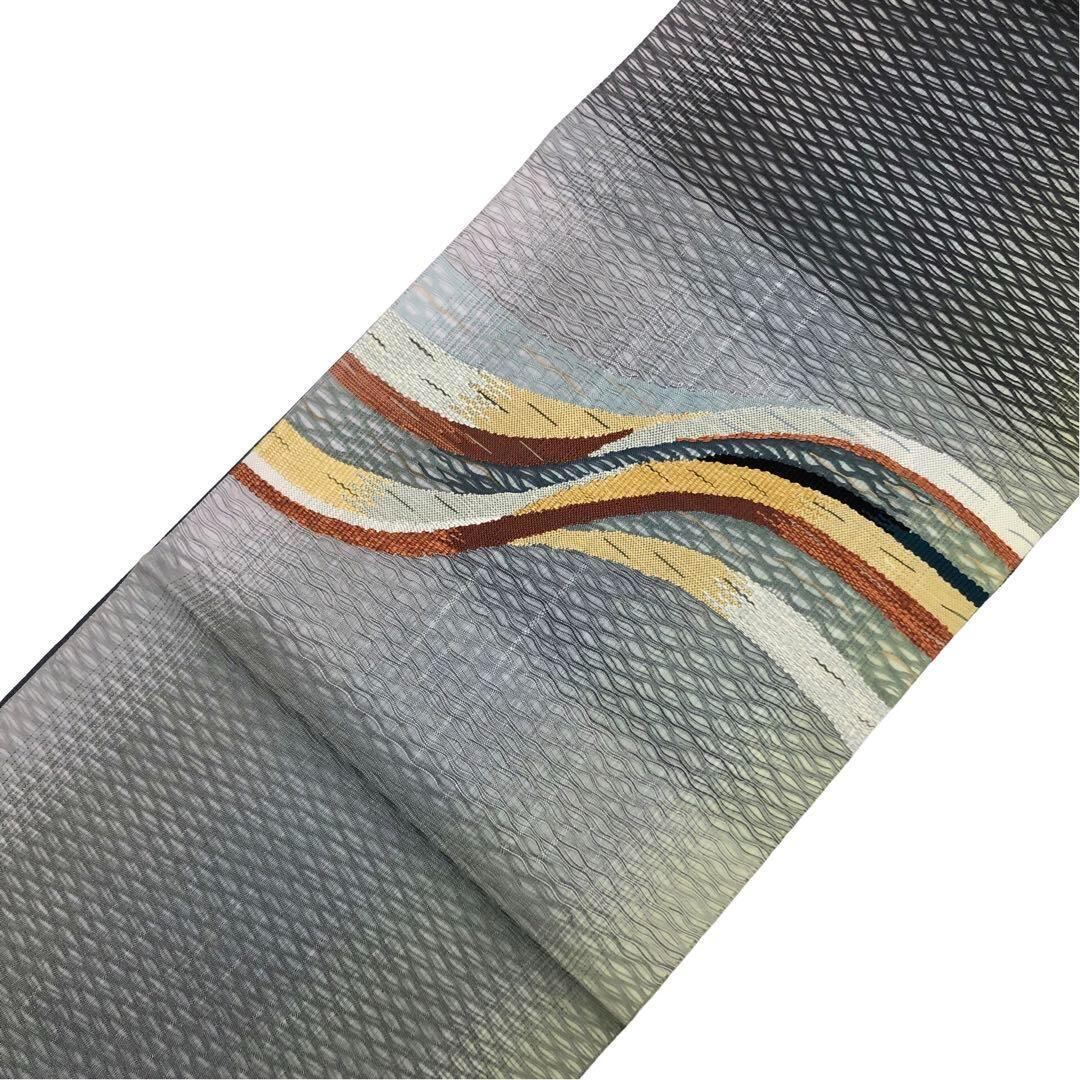 袋帯 すくい織 曲線抽象模様 グラデーション 薄灰色 O-3630 着物 きもの kimono 和服 和装 中古 リサイクル着物 【送料無料】