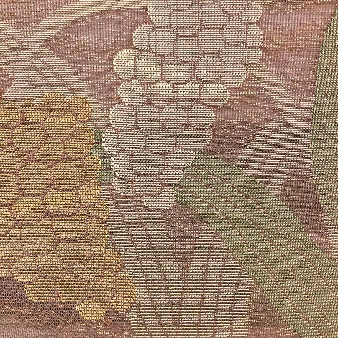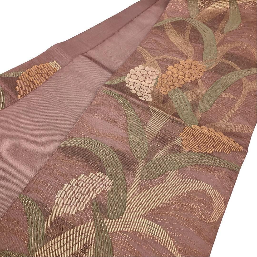 薄栗梅色の落ち着きのあるお色味に草模様に実の柄裄がデザインされた透け感のある素敵な柄裄のお品でございます。
