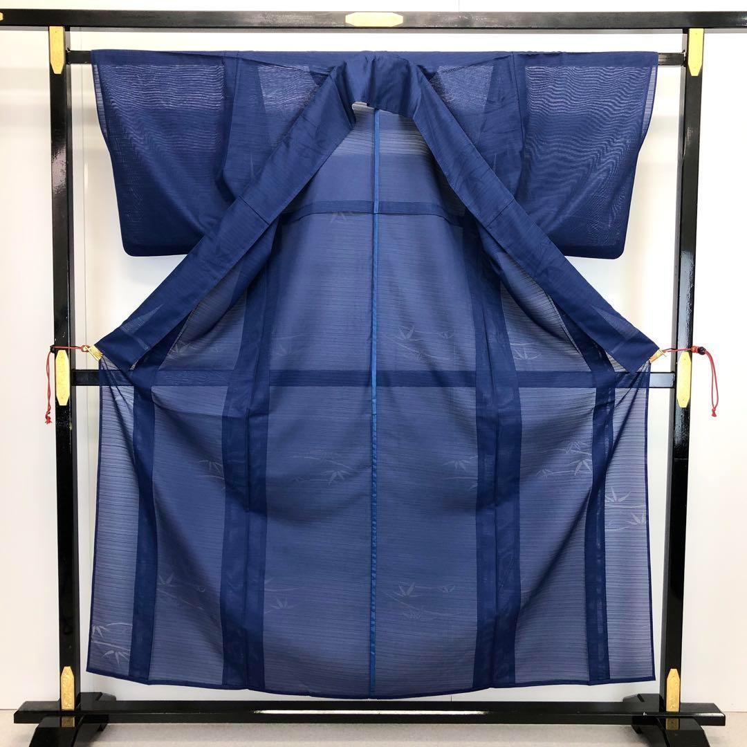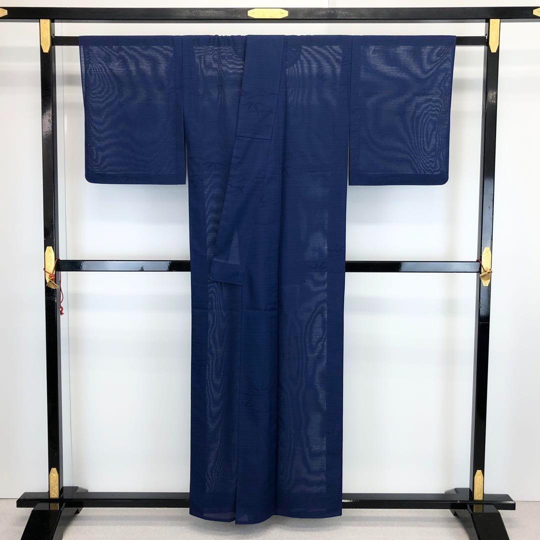 夏着物 色無地 絽 笹の葉模様 紺青色 K-3674