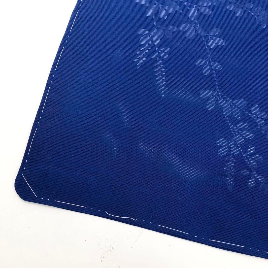 紺桔梗色のお色味に上品な桔梗と萩の花模様がデザインされた素敵な柄裄のお品でございます。
