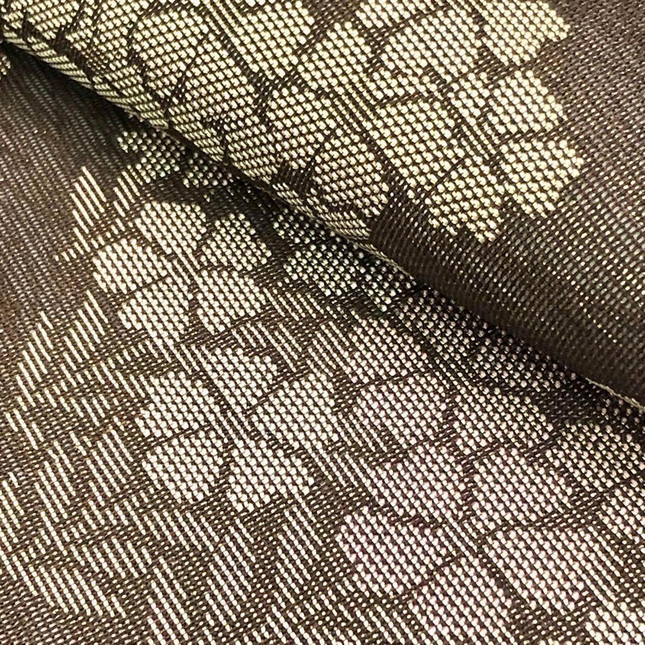 落栗色の落ち着きのあるお色味に撫子の花柄がデザインされた素敵な柄裄のお品でございます。