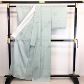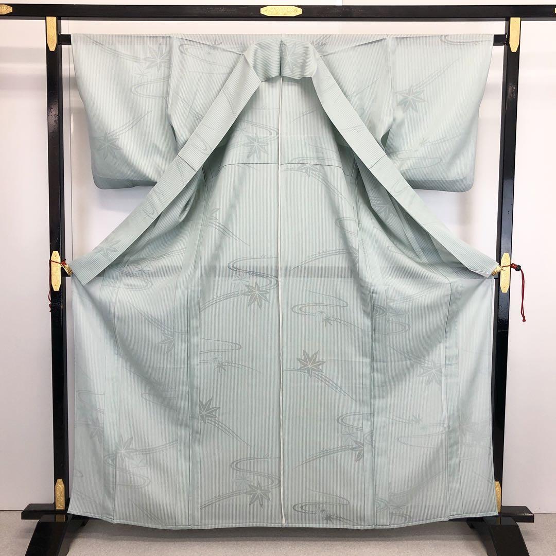 夏着物 色無地 縦絽 流水に楓 薄水色 K-3683