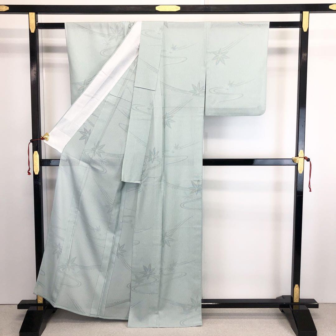 薄水色の上品なお色味、流水に楓の柄裄がデザインされた風流で涼しげな素敵な柄裄のお品でございます。