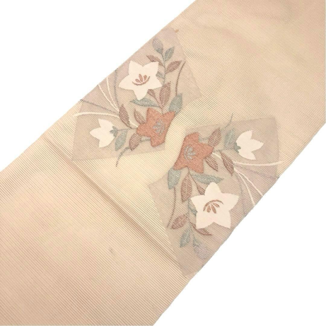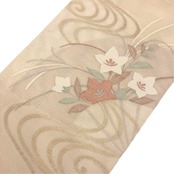 麹色のお色味、流水模様に桔梗の花柄がデザインされた素敵な柄裄のお品でございます。