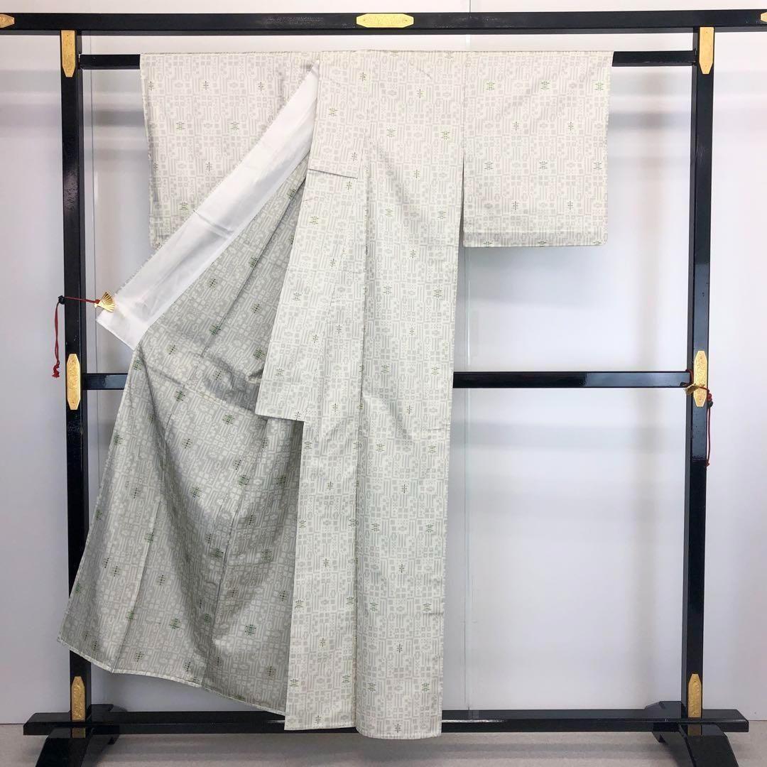 単衣 お召 抽象織模様 卯の花色 K-3682 着物 きもの kimono 和服 和装 中古 リサイクル着物 【送料無料】
