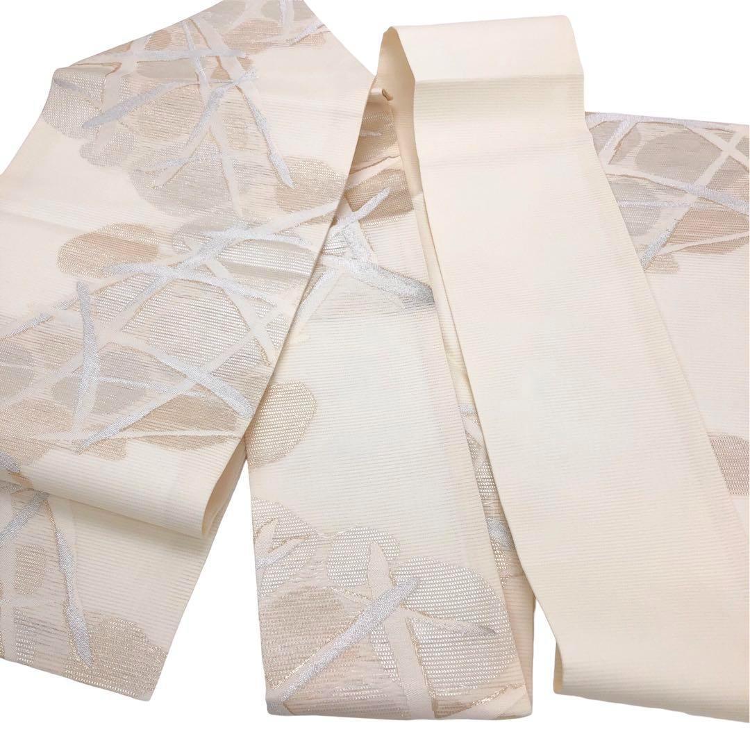 夏帯 名古屋帯 絽綴れ 抽象模様 金銀糸 乳白色 O-3614