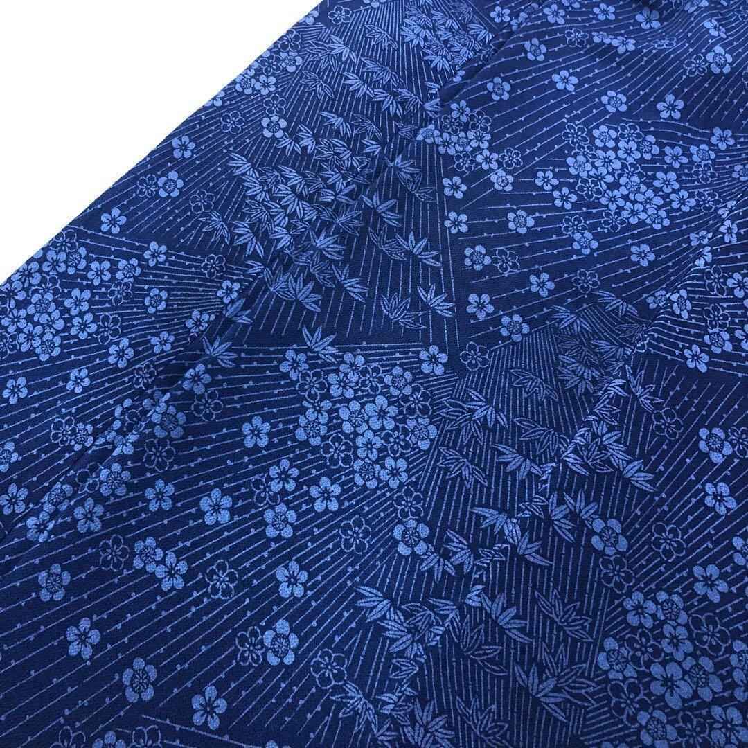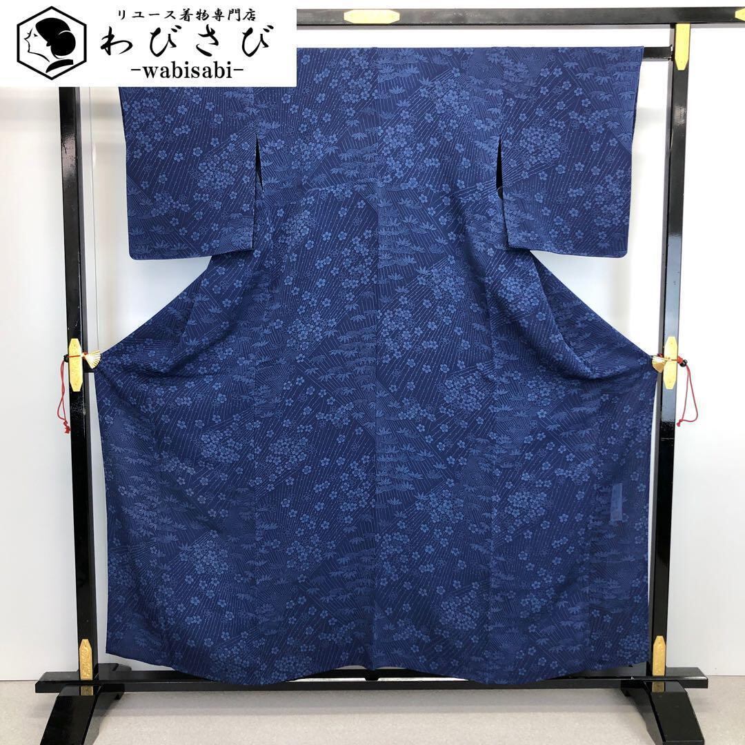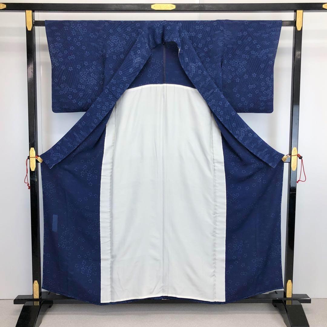 阿波藍染伝統工芸日本植物染織研究会員、金子正、阿波藍染の美しく雰囲気の良い藍染の縮緬に梅竹柄がデザインされた素敵な柄裄のお品でございます。