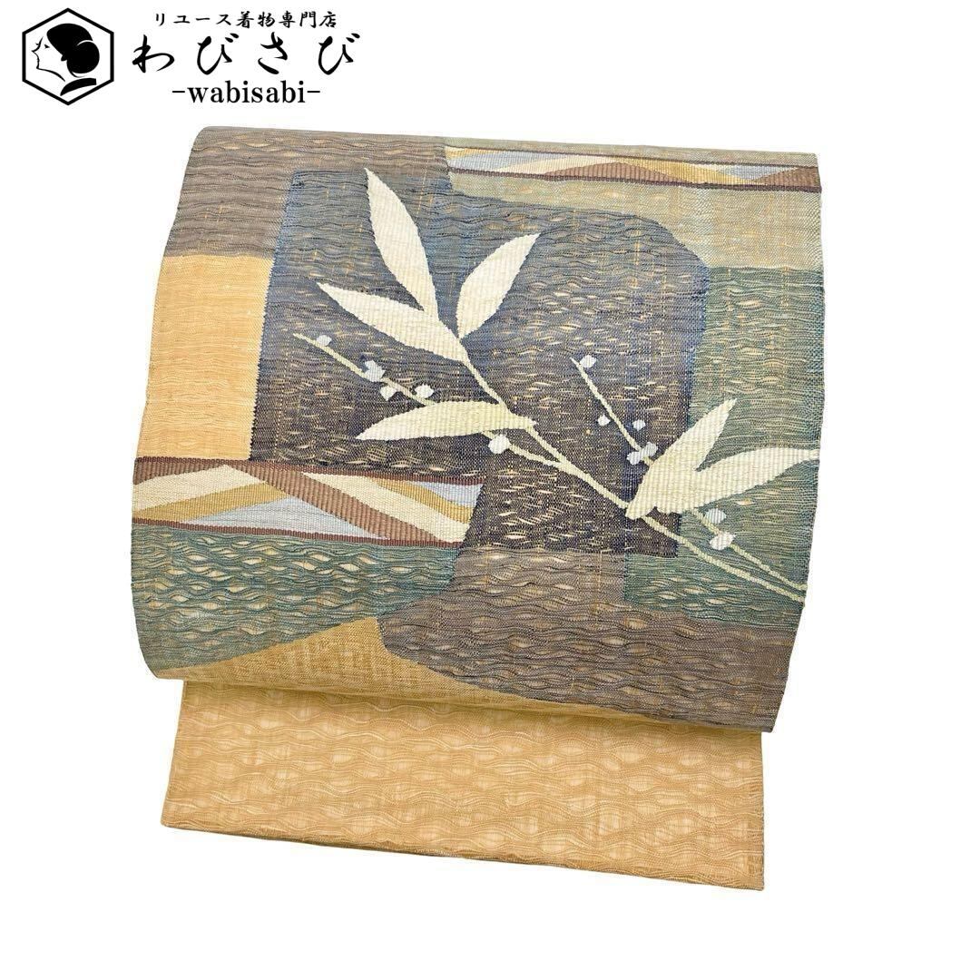 袋帯 すくい織 枝葉模様 玉蜀黍色 O-3645 着物 きもの kimono 和服 和装 中古 リサイクル着物 【送料無料】