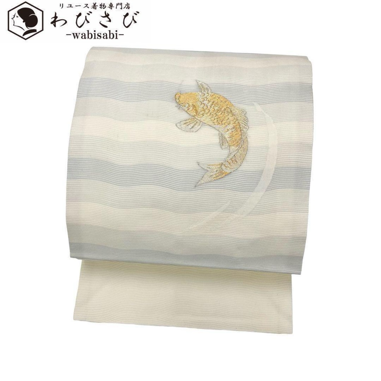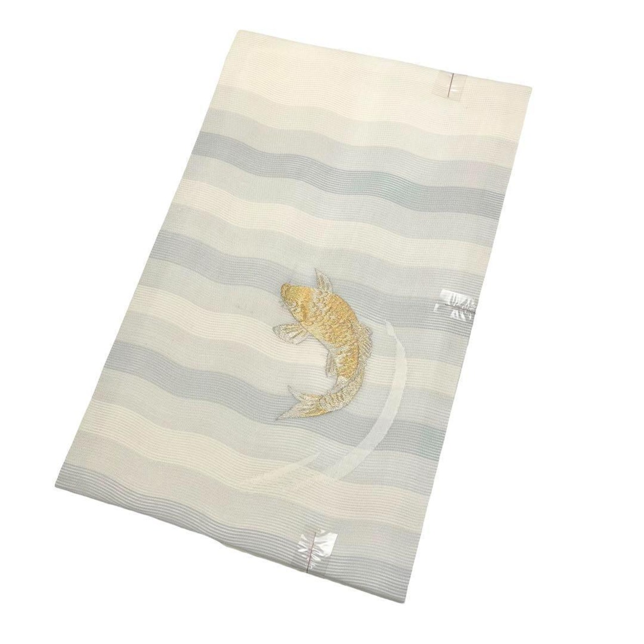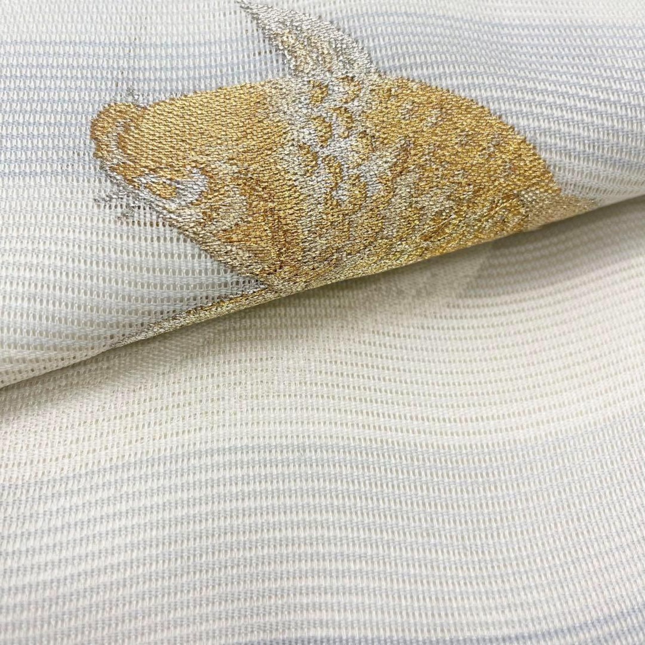 夏帯 名古屋帯 寄れ絽 金の鯉 楓 金銀糸 白百合色 O-3650