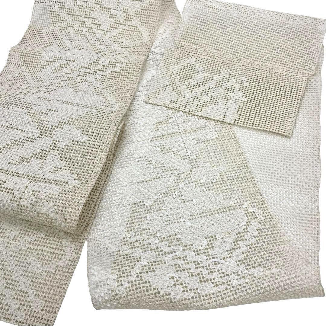 夏帯 羅 名古屋帯 抽象織模様 白百合色 O-3640 着物 きもの kimono 和服 和装 中古 リサイクル着物 【送料無料】