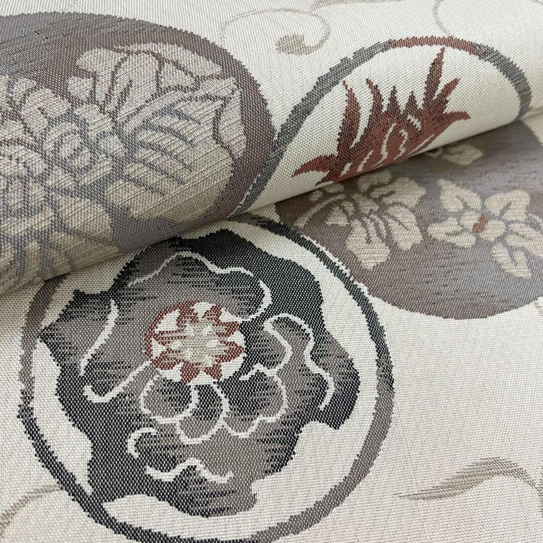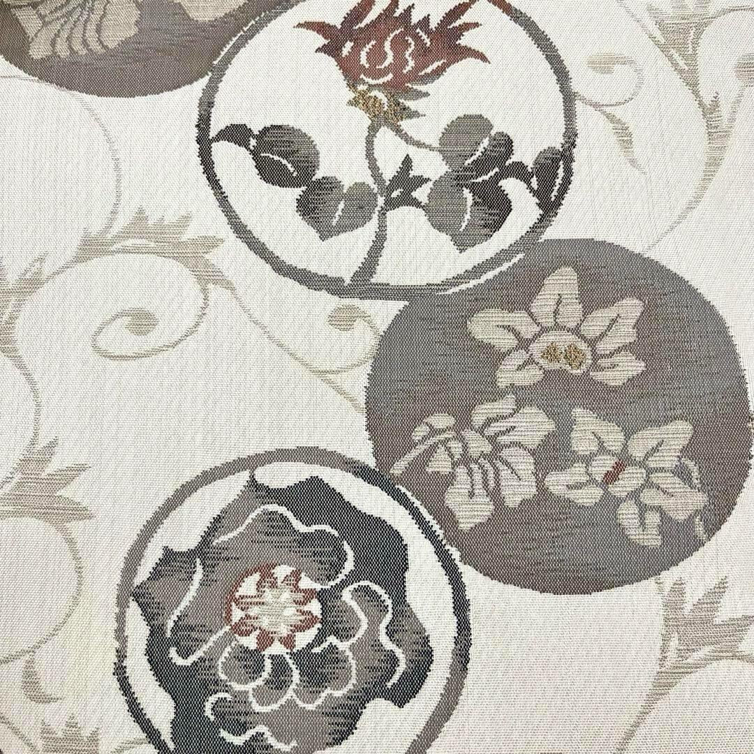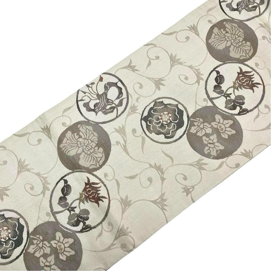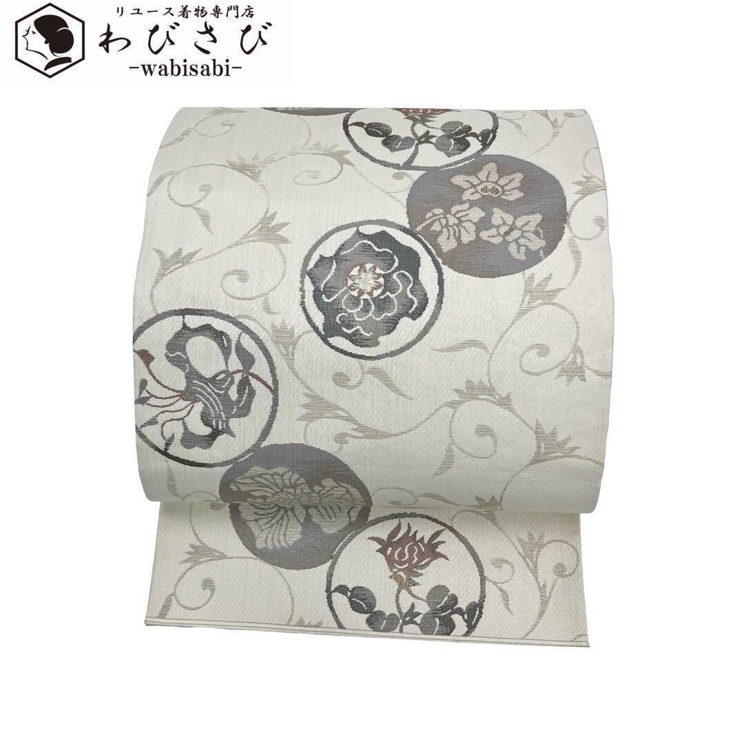 袋帯 丸に多様な花柄 花唐草模様 真珠色 ますいわ屋誂 O-3660