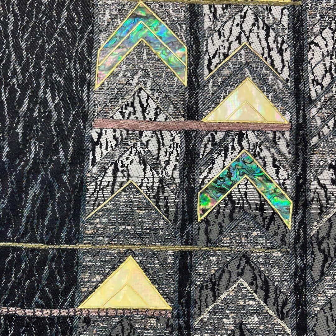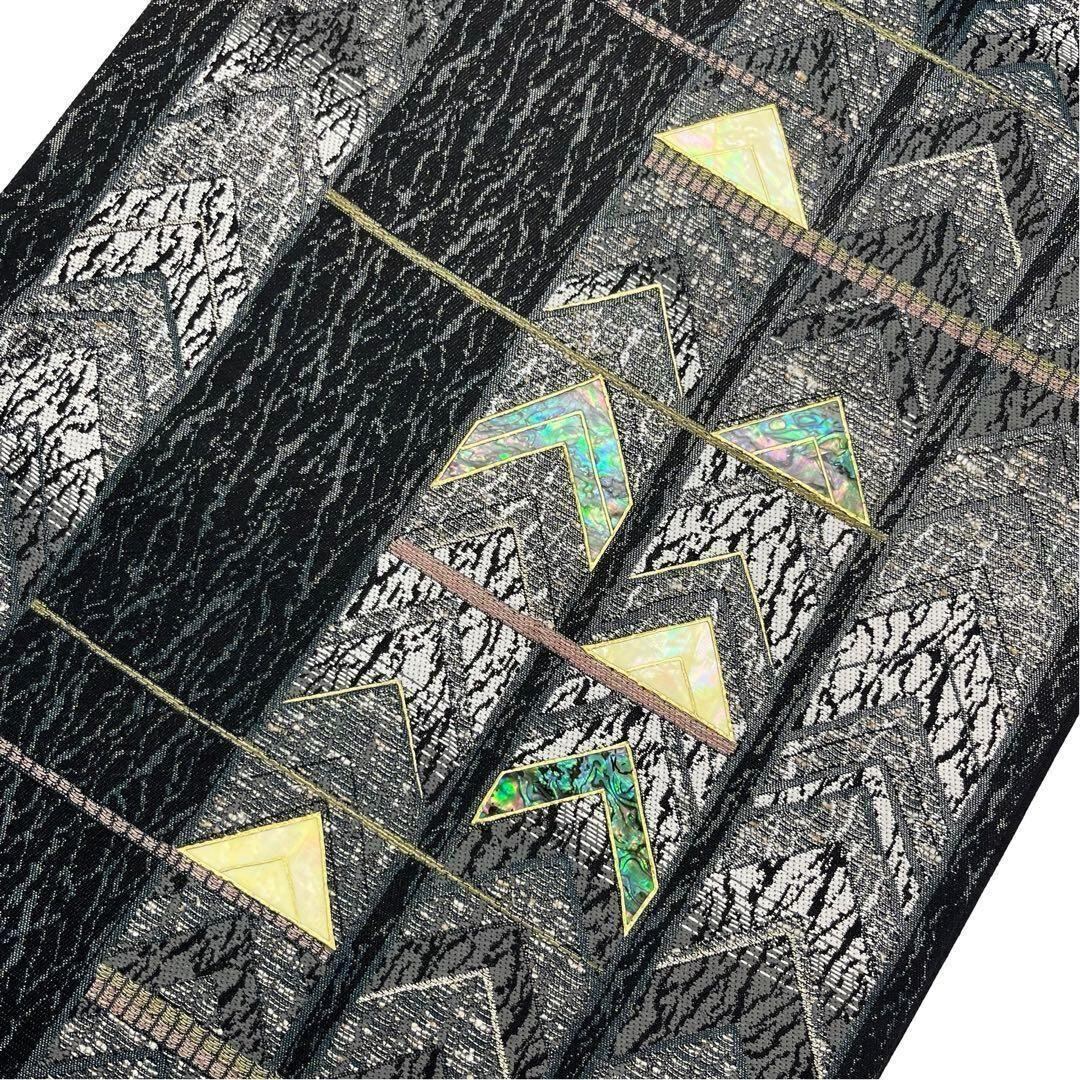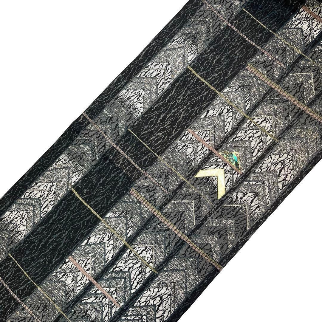 袋帯 螺鈿作家 藤本隆士 モダンな縦柄模様 金銀糸 黒色 O-3664 着物 きもの kimono 和服 和装 中古 リサイクル着物 【送料無料】
