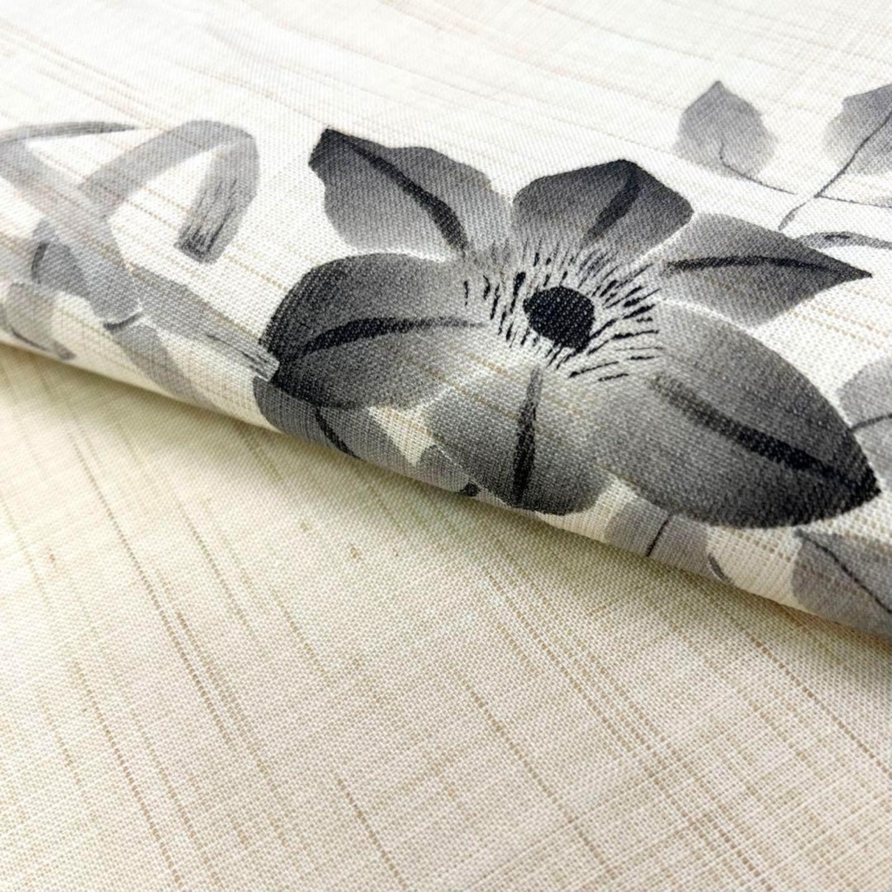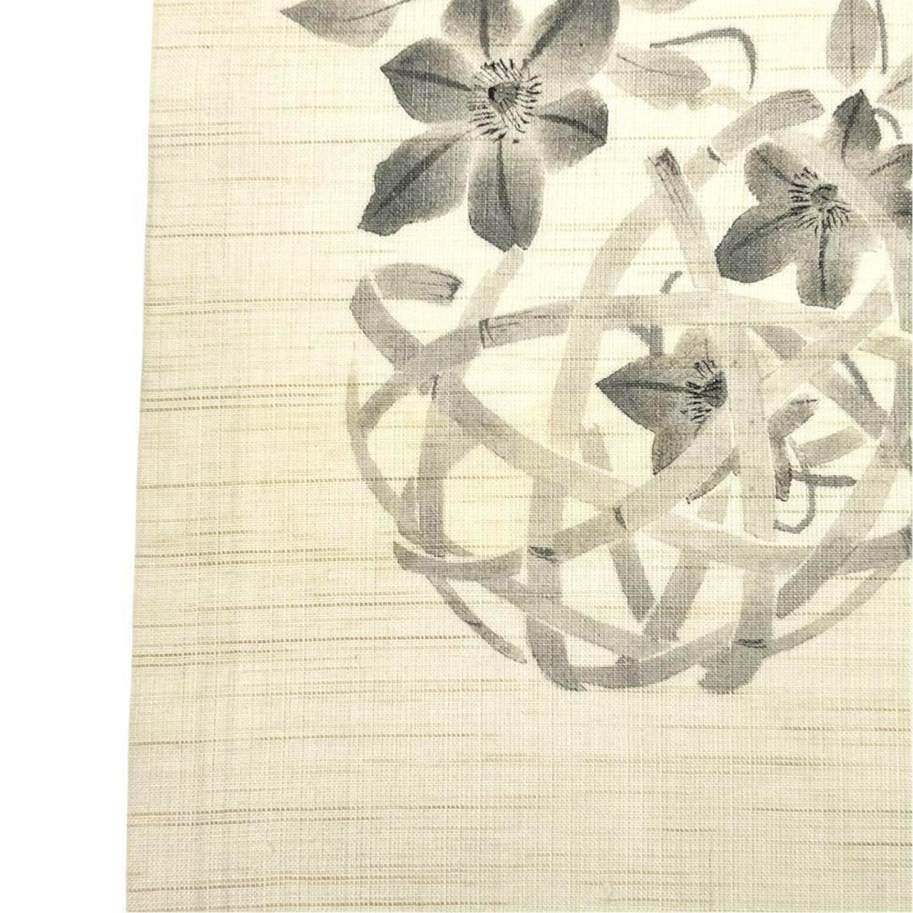 鳥の子色の雰囲気の良いお色味に墨の手描きでデザインされた花籠に花模様の味わいのある素敵な柄裄のお品でございます。