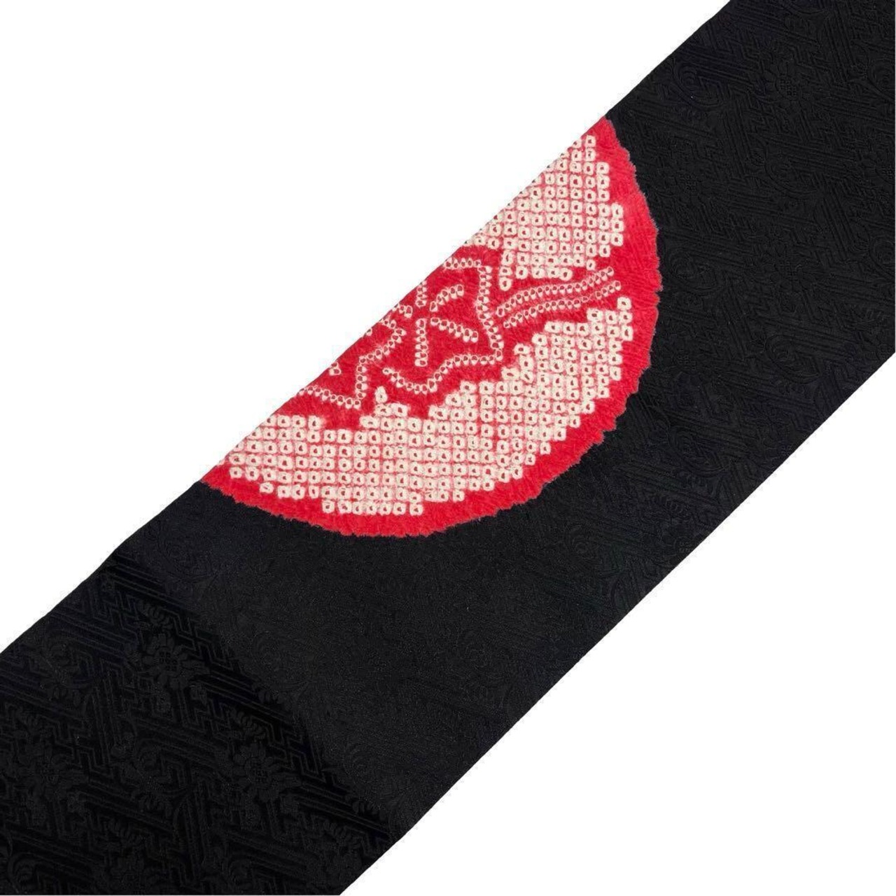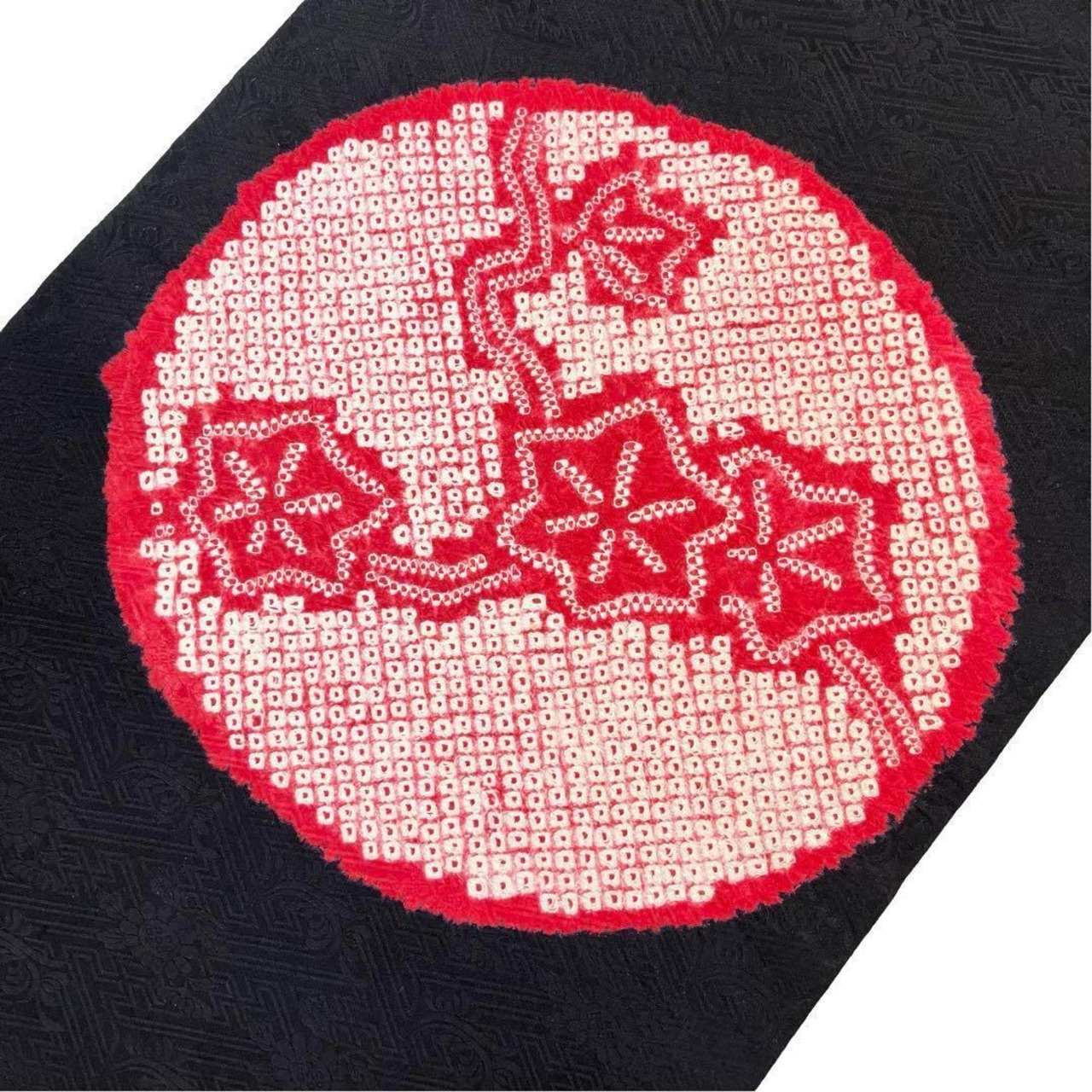 名古屋帯 丸に花模様 鹿の子絞り 地模様 黒色 O-3702