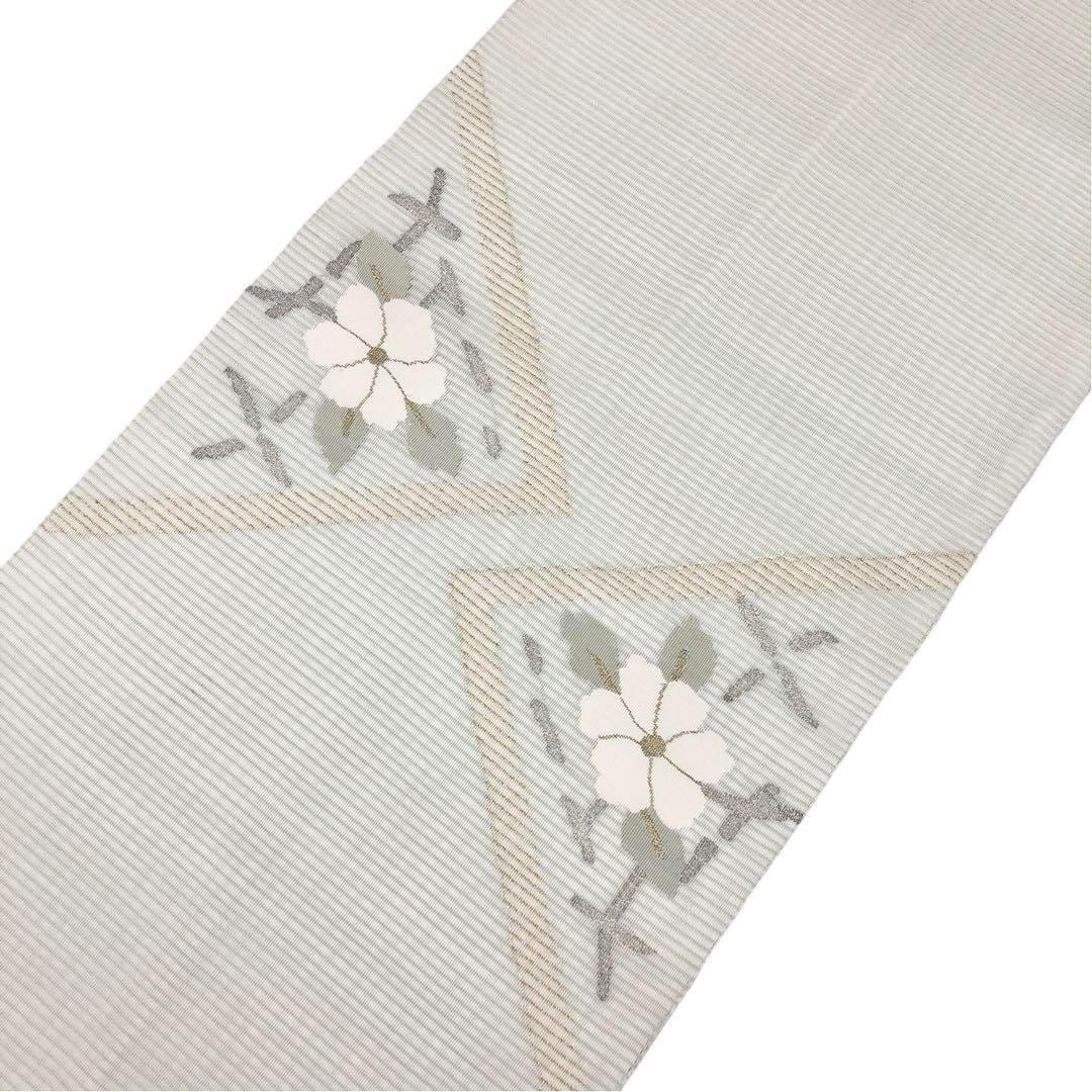 夏帯 袋帯 絽綴れ 霞模様に花柄 青白磁色 O-3708 着物 きもの kimono 和服 和装 中古 リサイクル着物 【送料無料】
